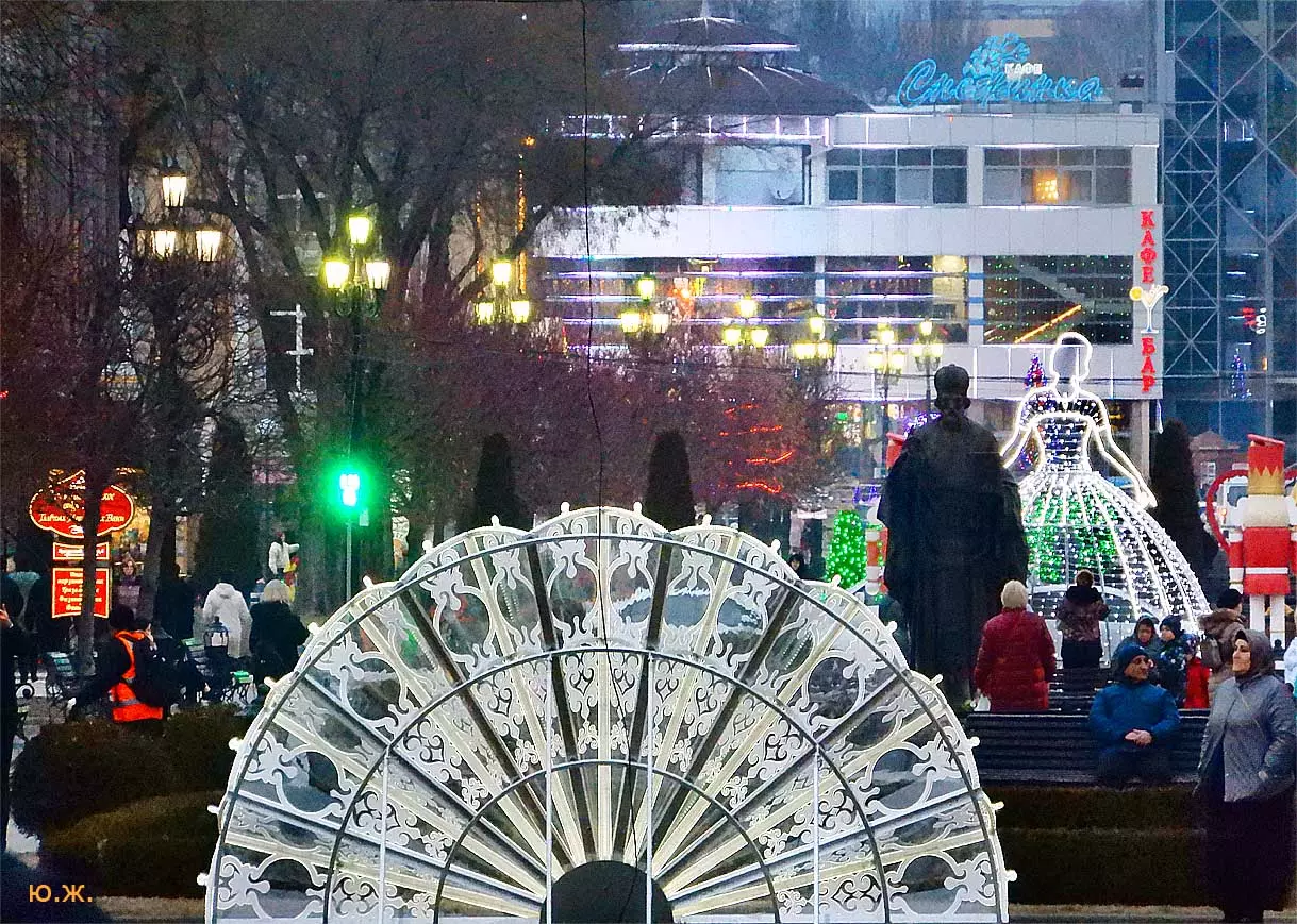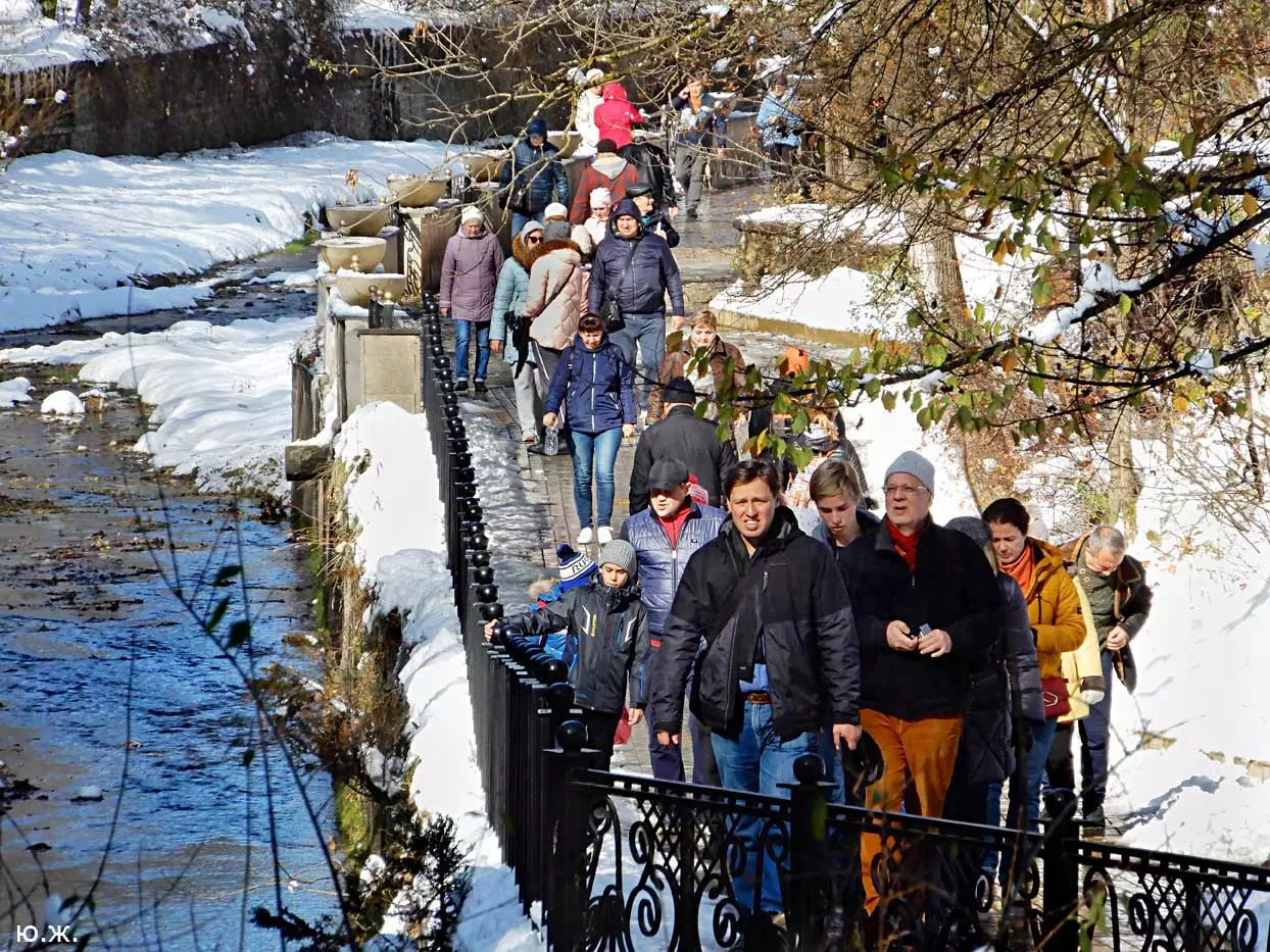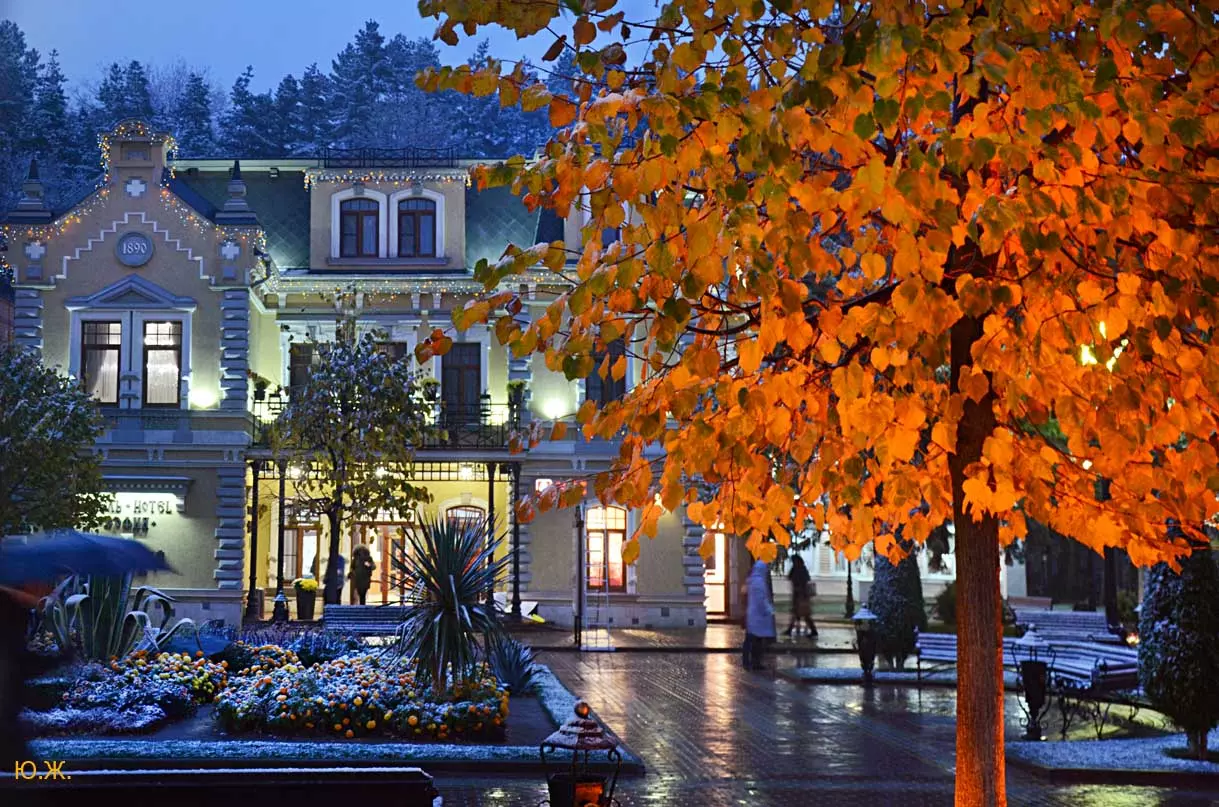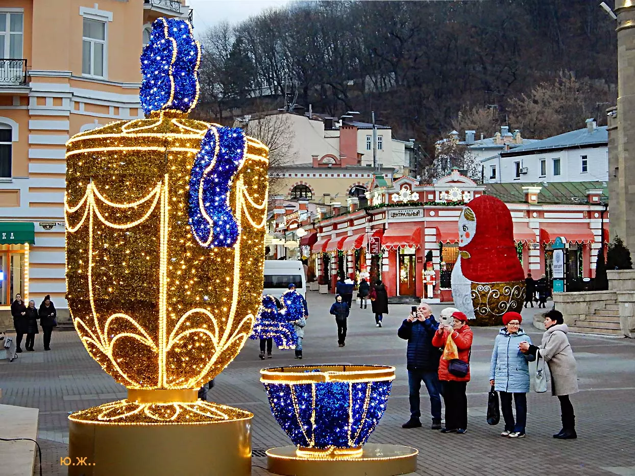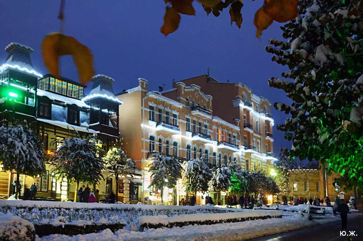 В этом альбоме показаны два последних месяца года 2019. Мы увидели красивый обильный снегопад на теплую землю, еще всю в цветах, на роскошные клумбы. Снег намел сугробы у светомузыкального фонтана, работающего так еще несколько дней, создавая незабываемое ощущение волшебной сказки. Такое повторяется далеко не каждый год. Еще мы увидели две высококачественные выставки всероссийского уровня в зале Нарзанной галереи и новом выставочном зале в Центре культуры курорта под одним названием «ТЕМЕНОС». Был еще один снег, поскромнее. Продолжались работы по реконструкции улиц Вокзальной и Дзержинского. Интересно открылись два прекрасных старинных дома — синагоги и раввина со стороны проспекта Победы. Елка вернулась на свое традиционное место. Город готовится к встрече Нового года…