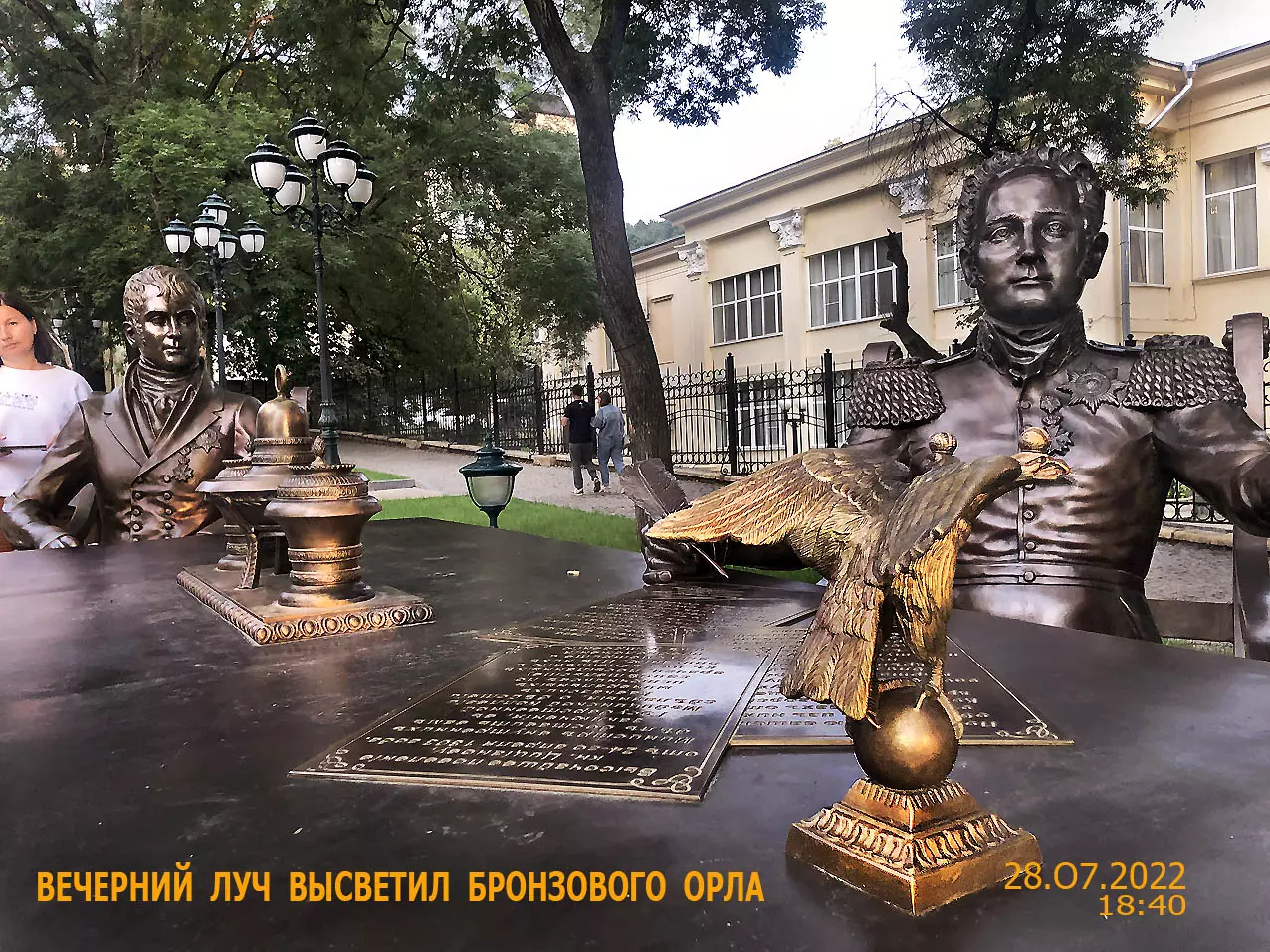 Был сегодня у бронзового ансамбля, увековечившего момент подписания Императором Александром Первым знаменитого Рескрипта о признании КМВ курортами государственного значения. Очень приятно был удивлен, увидев на старом месте двуглавого бронзового орла, который был украден вандалами несколько месяцев назад! С удовольствием сделал небольшую фотосессию — здесь несколько фотографий из нее. Радует, что все встало на свое место.
