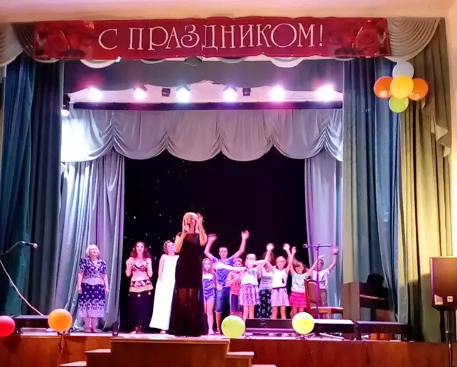 Всех именинников пригласили на сцену, поздравили и вручили памятные подарки и именные открытки. После чего начался праздничный концерт. Дети читали стихи, пели песни. Августовская именинница Л.Мажачкина исполнила для собравшихся музыкальную композицию на фортепиано на тему песен из кинофильма «Семнадцать мгновений весны». Медицинская сестра М.Прыгунова исполнила песню с «Днем рождения» и композицию «Два сердца», посвящен