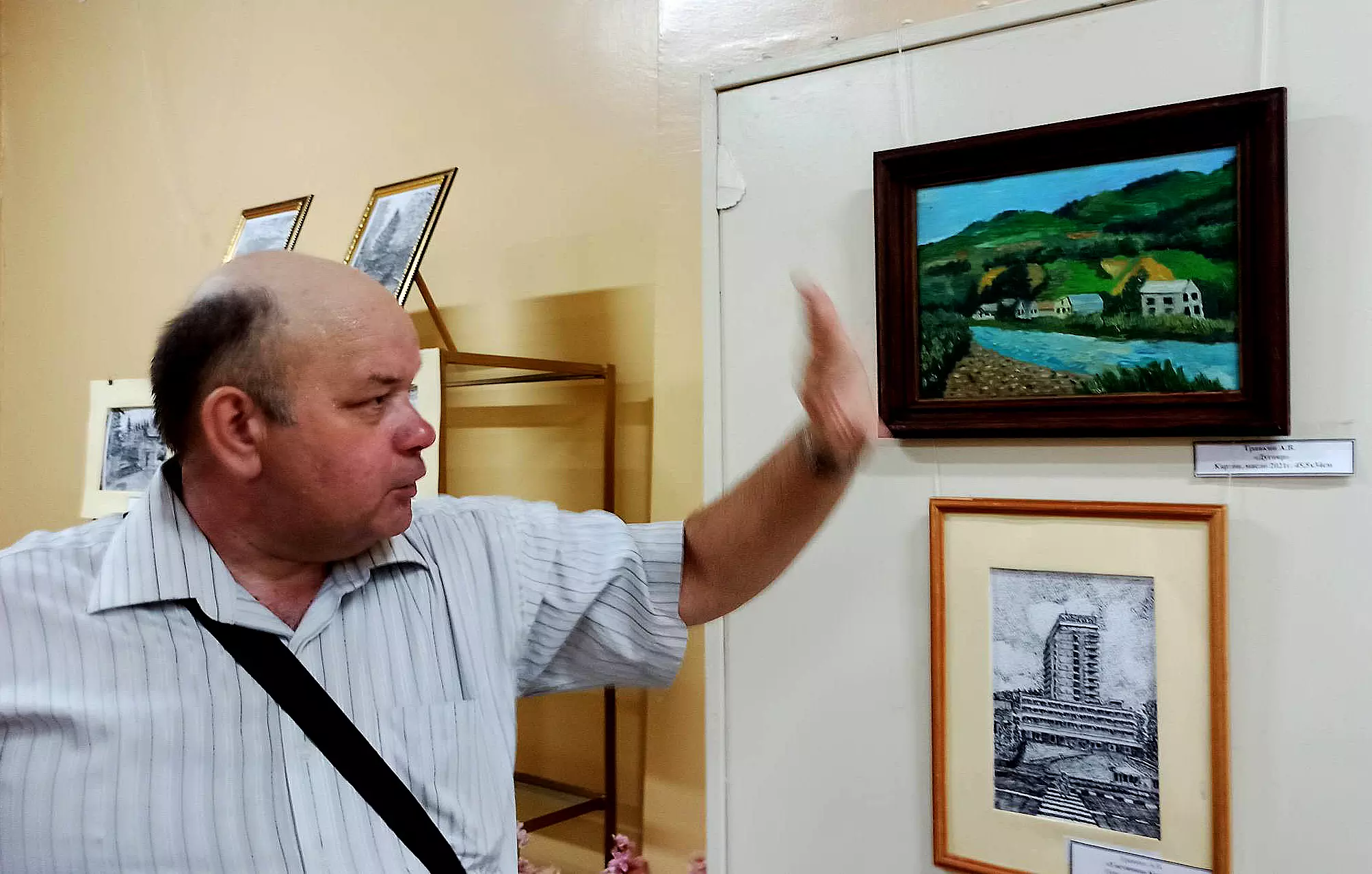 На выставке, которая продлится до 15 сентября, представлены 35 работ: это городские и природные пейзажи, архитектура Кисловодска, объекты культурного наследия. Подавляющее большинство произведений выполнены в графике — любимом художником виде изобразительного искусства, передающем четко, «черным по белому» и изображаемый объект, и главную мысль художника. Интерес публики привлекли и акварельные пейзажи, которые, несмотря на кажущуюся простоту, завораживают точностью передачи и поэтическим настроением.