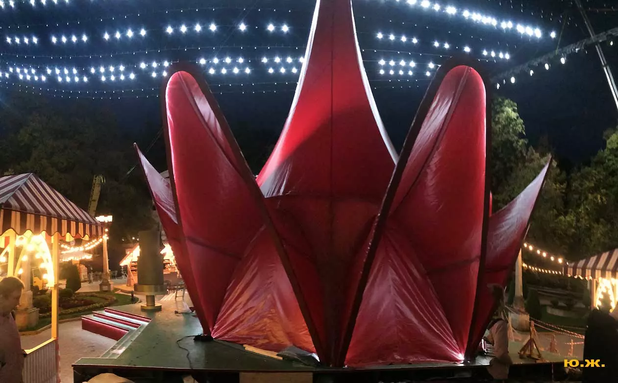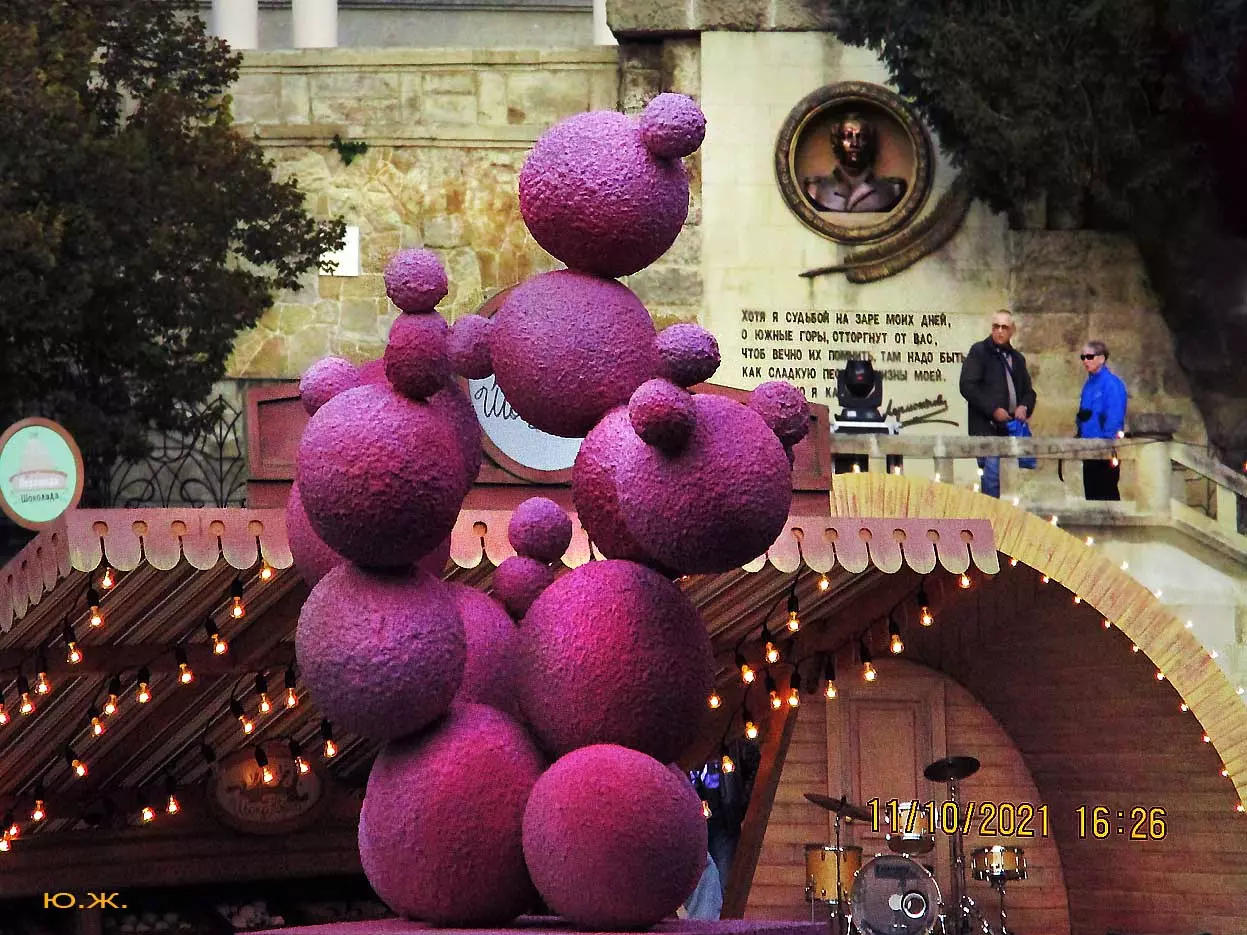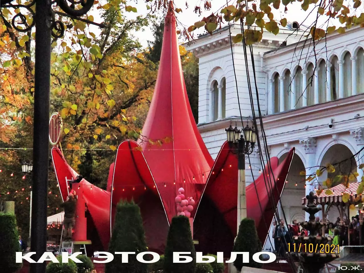В первых числах октября 2021 года началась съемка фильма Чебурашка. На пространстве между Колоннадой и гротом Демона стала быстро заполняться декорациями и реквизитом и освещаться красивым светом территория, опоясанная полосатыми лентами.