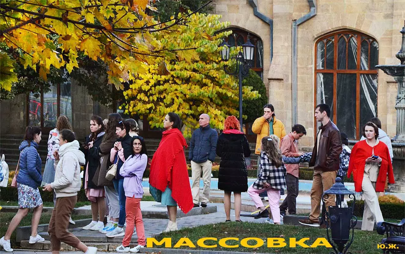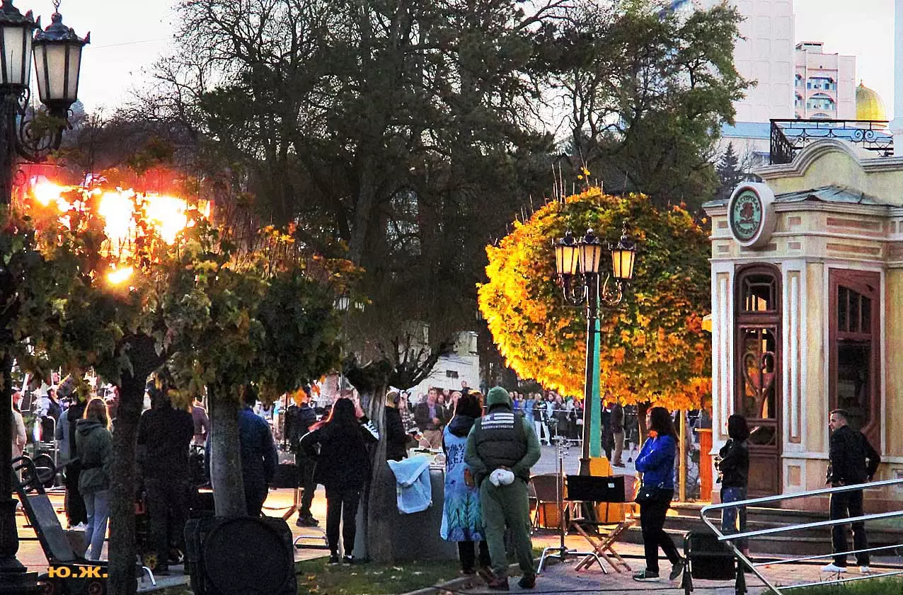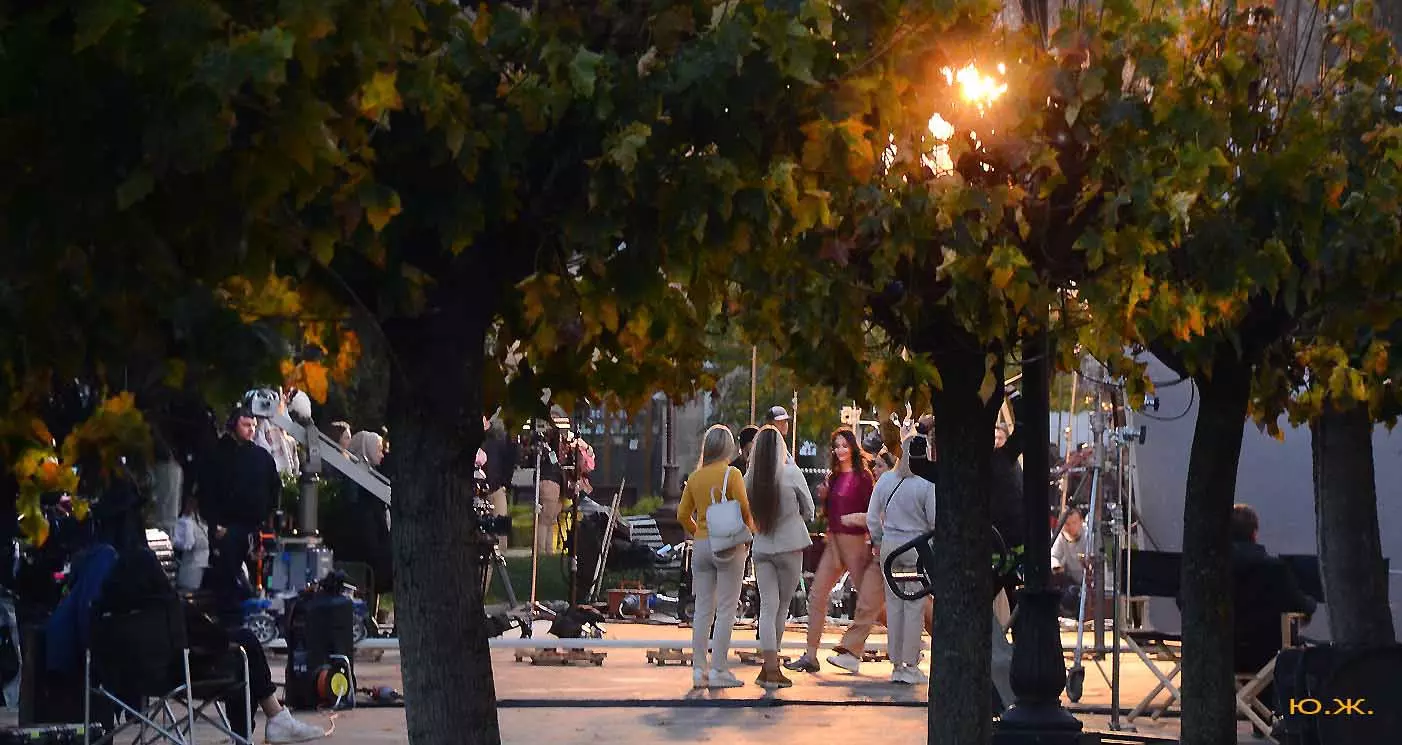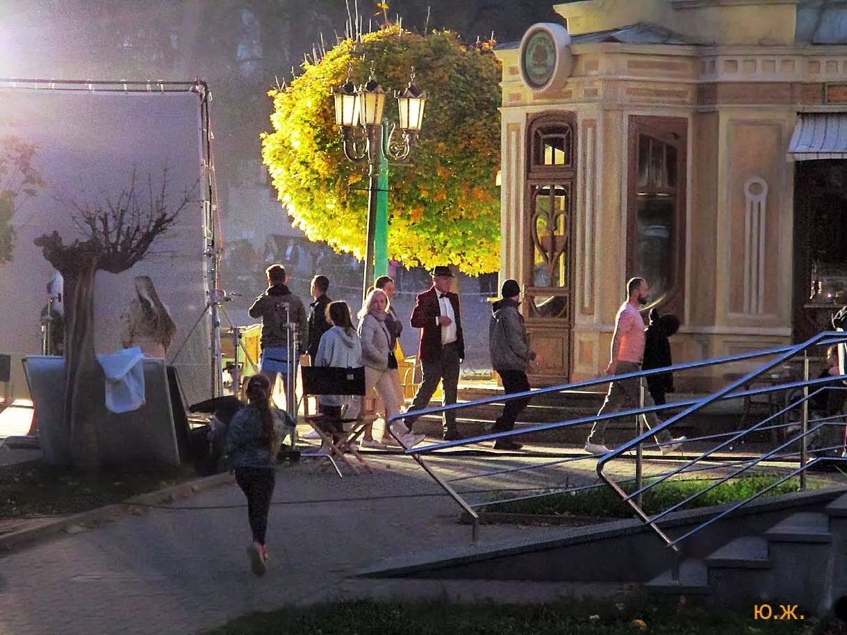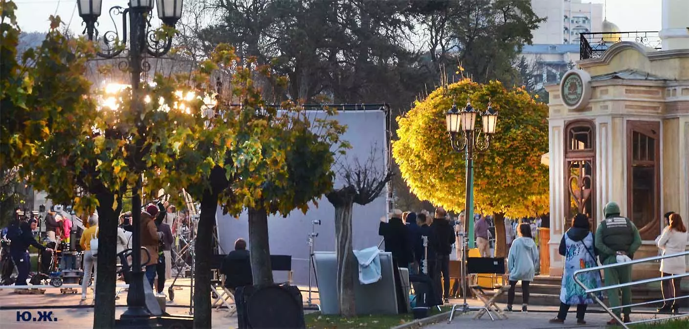 Когда после съемочного дня снимались ленточки ограды, обычные люди рассматривали на площади реквизит, декорации, фотографировались и рассылали снимки кинематографического Кисловодска домой по всей России.
