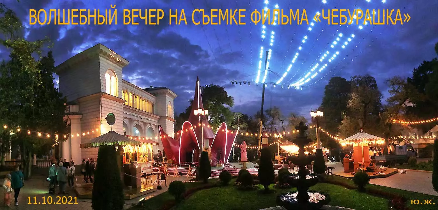 Надпись оповещала: «Уважаемые жители города, на площади ведутся съемки фильма! Приносим извинения за возможные неудобства». Территория сразу стала привлекательной и для курортников, и для кисловодчан, особенно вечером, а часто и ночью, когда присутствовали главные артисты и проходили основные съемки…Тогда мы и в мыслях не могли себе представить, что в первые дни января 2023 года произойдет настоящий новогодний триумф — за первую неделю проката фильм соберет 6,3 миллиарда рублей — рекорд за всю новейшую историю российской киноиндустрии. Кисловодчане также смогли в январе посмотреть Чебурашку на большом экране в кинотеатре на ул. Кирова.