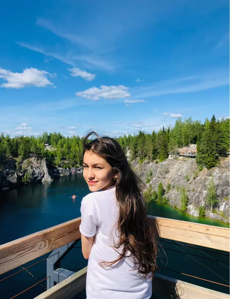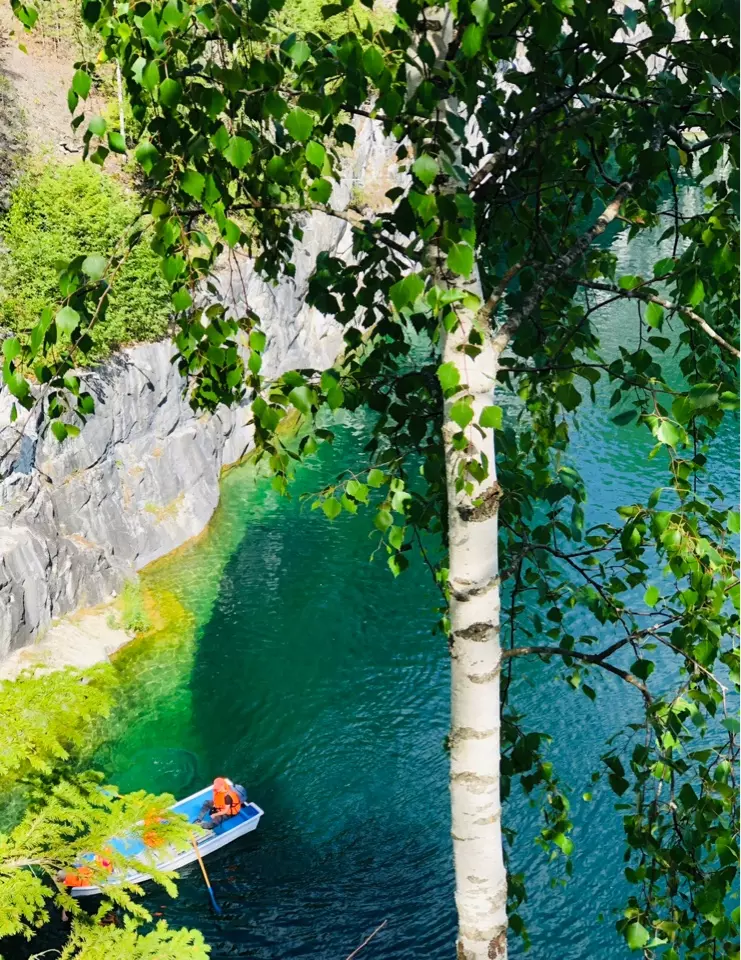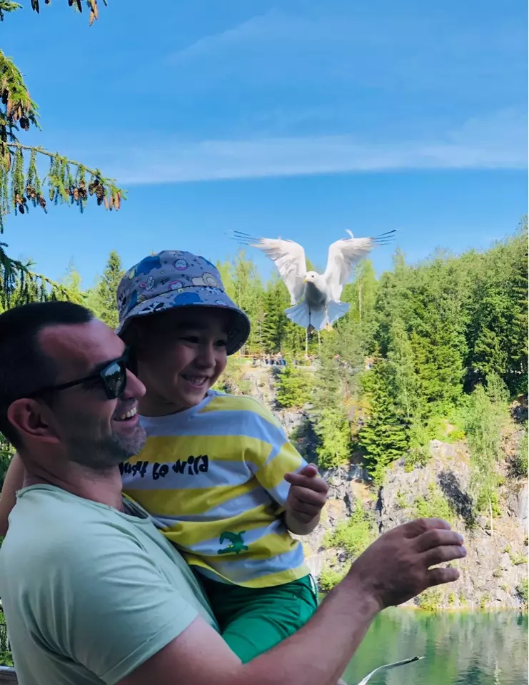 В национальном парке Рускеала, у меня захватывает дух от бездонных озер и бескрайней зелени. А какие здесь дружелюбные и смешные чайки! Они совсем не боятся туристов, и с удовольствием едят печенье с рук. В этих землях потрясающая природа. Чтобы рассмотреть все эти виды, я захотела спрыгнуть с тарзанки вместе с моей бесстрашной тетей Лизой. Это были самые волшебные секунды в моей жизни.