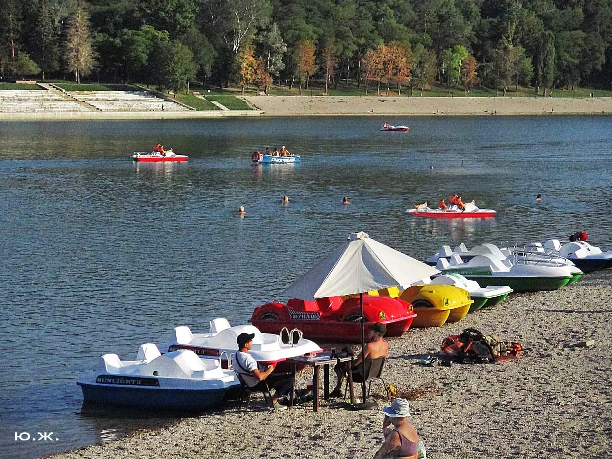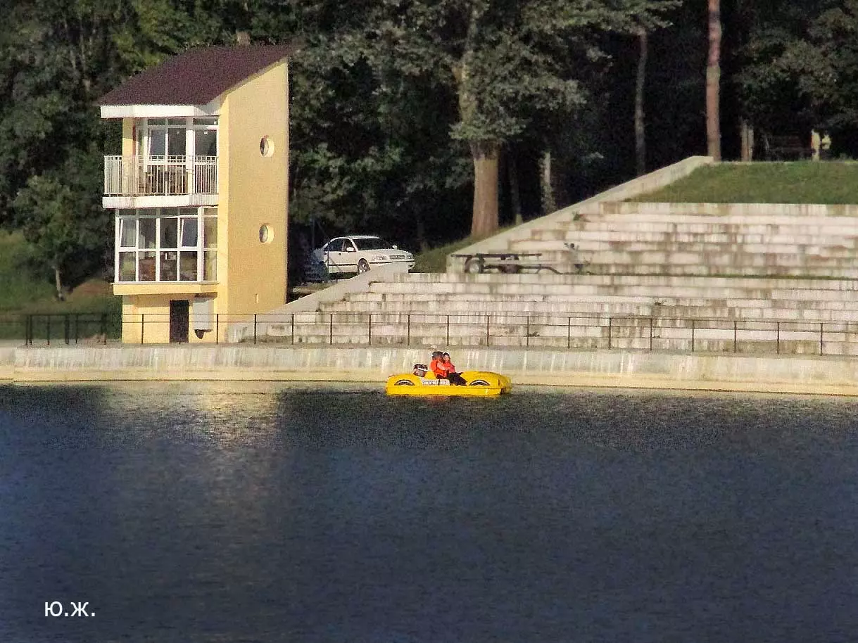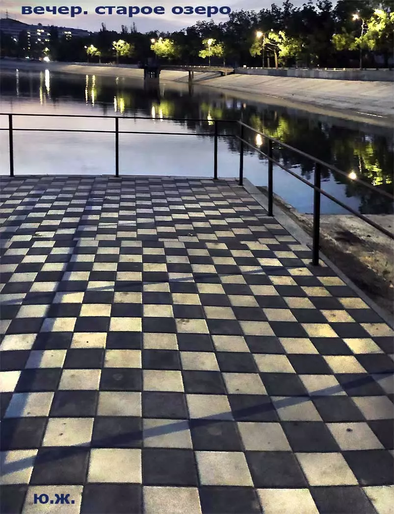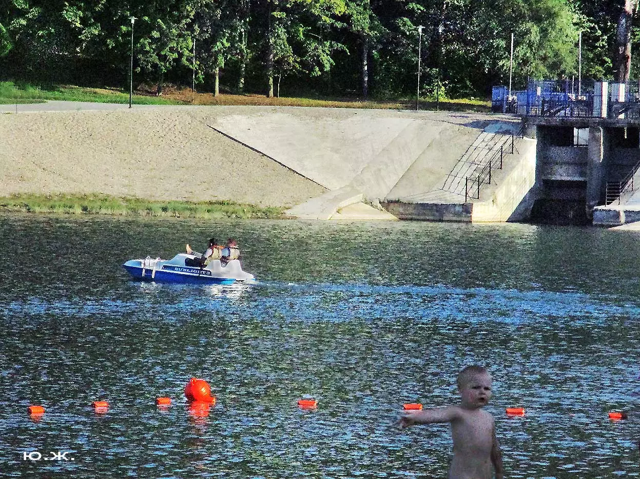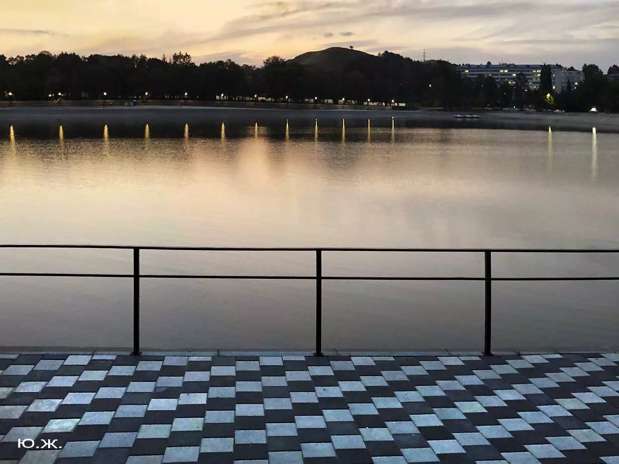 Сейчас, когда дни становятся короче, раньше включается освещение вокруг озера, а так же над мощенными плиткой довольно длинными прогулочными дорожками, и когда по дамбе движутся с включенными фарами автомобили, начинается игра света на воде. Еще не темное небо отражается с облаками в озере, вместе с многочисленными бликами от фонарей… В начале сентября начали спускать воду. Хотя слив воды идет медленно, и люди продолжают сюда приходить позагорать и прогуляться в вечернее время, озеро уже не то.