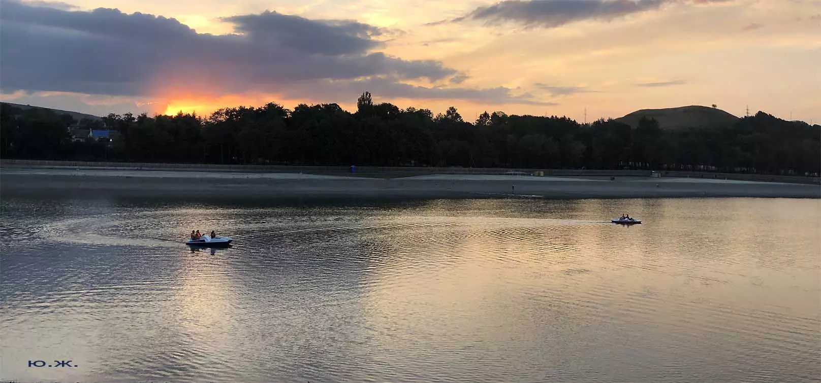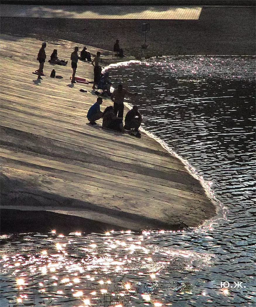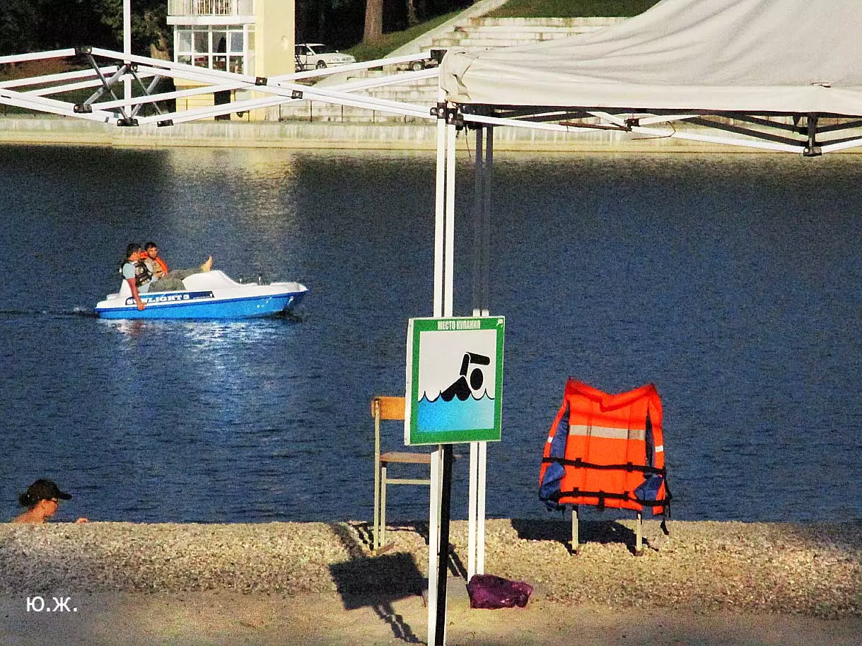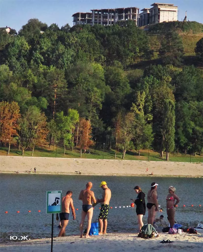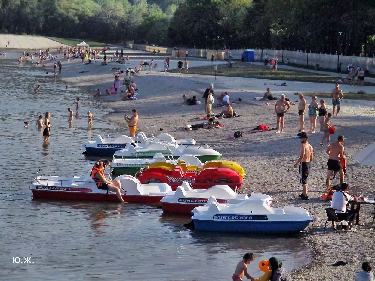 Сейчас, когда дни становятся короче, раньше включается освещение вокруг озера, а так же над мощенными плиткой довольно длинными прогулочными дорожками, и когда по дамбе движутся с включенными фарами автомобили, начинается игра света на воде. Еще не темное небо отражается с облаками в озере, вместе с многочисленными бликами от фонарей… В начале сентября начали спускать воду. Хотя слив воды идет медленно, и люди продолжают сюда приходить позагорать и прогуляться в вечернее время, озеро уже не то.