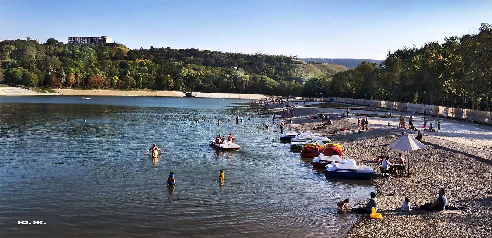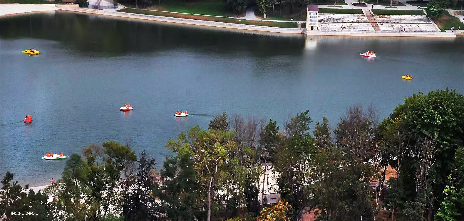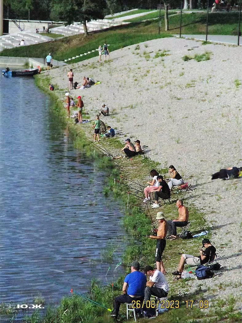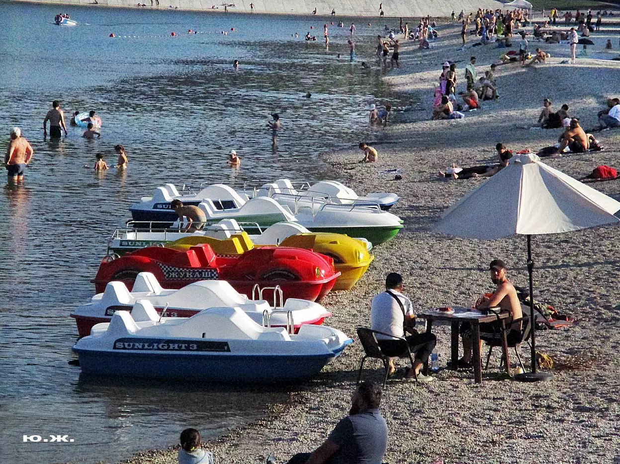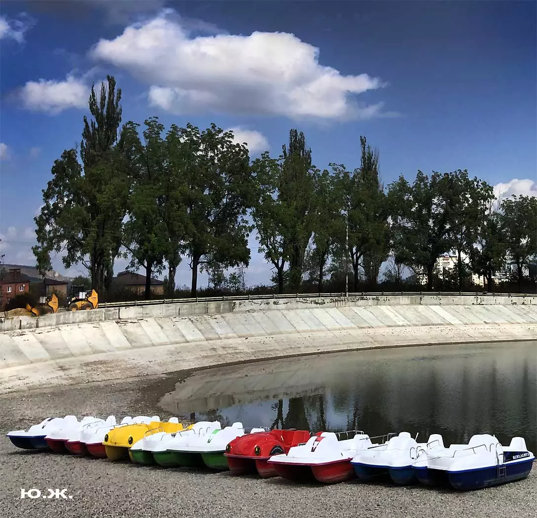 Сейчас, когда дни становятся короче, раньше включается освещение вокруг озера, а так же над мощенными плиткой довольно длинными прогулочными дорожками, и когда по дамбе движутся с включенными фарами автомобили, начинается игра света на воде. Еще не темное небо отражается с облаками в озере, вместе с многочисленными бликами от фонарей… В начале сентября начали спускать воду. Хотя слив воды идет медленно, и люди продолжают сюда приходить позагорать и прогуляться в вечернее время, озеро уже не то.