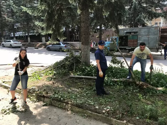 В понедельник на улицы вышли около 100 организаций и предприятий города. Добровольческие отряды очистили десятки дорожных магистралей и зеленых островков города-курорта от последствий разгула стихии. Во вторник спасательная служба произвела расчистку русла реки Березовая в районе ул. Шаумяна, спил сломанных деревьев на территории Пантелеимоновского храма. В течение трех суток кисловодские спасатели подготовили к вывозу 65 сломанных деревьев. Пожарная служба откачала воду из подземного пешеходного перехода на Октябрьской площади. Всего оперативные службы отработали 4856 заявок, поступивших от жителей города.