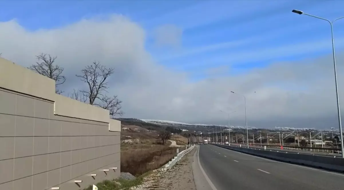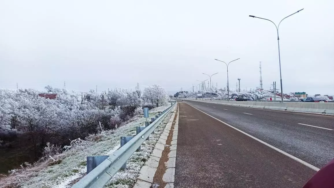 С наступлением декабря такое удивительное явление часто можно наблюдать на трассе Кисловодск — Ессентуки. Четкая граница между солнечным, абсолютно бесснежным ландшафтом Кисловодска и затянутым черными тучами небом над заснеженными Ессентуками — это словно путешествие из осени в зиму, которое мы постарались передать в нашей фотогалерее.