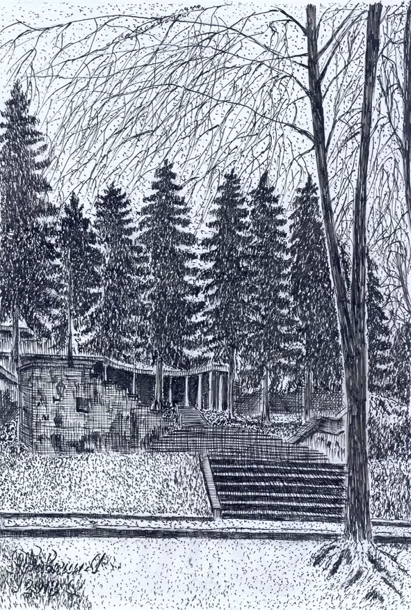 - Каскадная лестница возведена по проекту архитектора Ивана Леонидова в 1936 году. Он же автор ваз и колонн корпусов санатория.