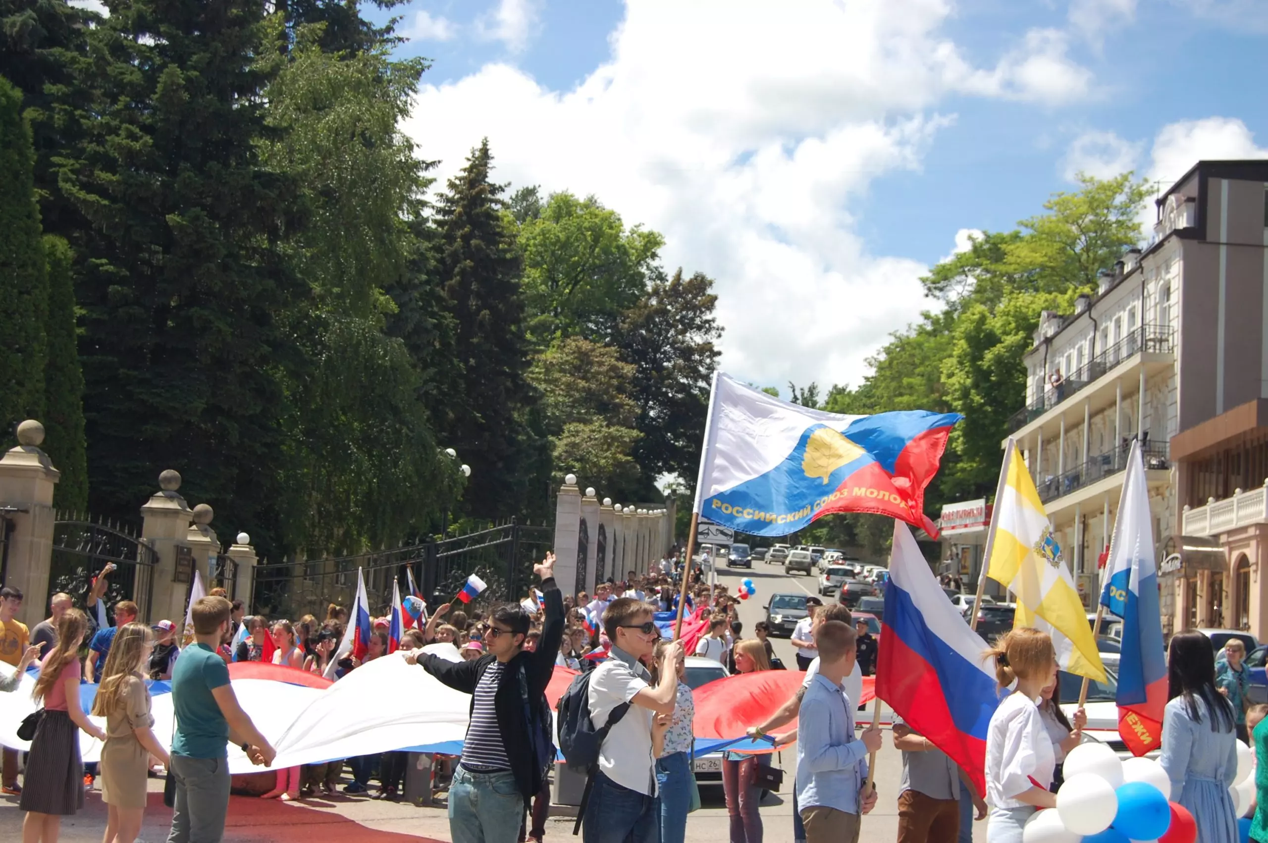 Патриотический праздник под названием «Россия – в сердце кисловодчан!» открылся молодежным шествием с 50-тиметровым триколором от мемориала «Журавли» к Курортному бульвару. Короткая официальная часть прошла на площадке перед Октябрьскими нарзанными ваннами. С короткими, но теплыми поздравлениями выступили глава города Александр Курбатов, председатель думы Сергей Финенко, почетные граждане Кисловодска Любовь Волошина и Виталий Харин, ветеран военно-морского флота Леонид Труфанов, председатель Союза офицеров запаса «Офицерская честь» Борис Фарзалиев, директор Центра молодежи Юлия Сидорова, представители студенчества, спортивного сообщества.