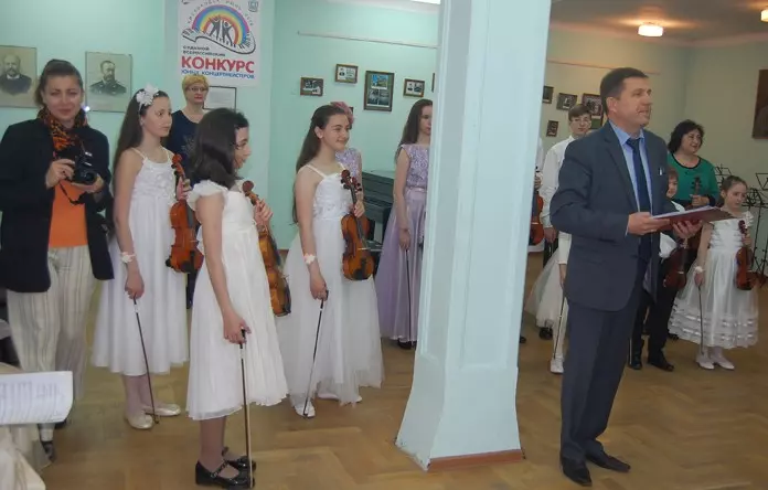 Яркая встреча с юными музыкантами прошла в Детской музыкальной школе имени С.Рахманинова. Дети старались изо всех сил, чтобы своим талантом порадовать знаменитого маэстро, и им это удалось. Ансамбль скрипачей исполнил «Вальс» И. Штрауса, камерный ансамбль «Рондо» — «Ригодон» Ж. Рамо, а пианистка Николь Шехтман — «Ноктюрн» Э. Грига. Великолепным подарком для дорогого гостя стал видеоальбом, посвященный годам его учебы и становления в Ленинградской (теперь Санкт-Петербургской) консерватории имени Н. А. Римского-Корсакова. Леонид Абрамович учился вместе с Юрием Темиркановым, его педагогами были выдающиеся профессора И. Мусин и Н. Рабинович. В альбом вошли бесценные совместные архивные фотографии с прославленными артистами и деятелями культуры. Собравшиеся вспоминали те годы, когда в Кисловодске каждое лето гастролировали ведущие оркестры страны, и о достойном месте, которое всегда занимал на музыкальном пьедестале оркестр филармонии на КМВ под управлением Леонида Шульмана. От всей души поблагодарив организаторов встречи, директора ДМШ Александра Николаева и ее маленьких участников, маэстро обратился к будущим коллегам с пожеланием: «Любите музыку всей душой!». От имени кисловодчан гостя и его супругу приветствовала замглавы администрации Кисловодска Татьяна Загуменная, которая пожелала им крепкого здоровья, неиссякаемой энергии и творческого вдохновения.