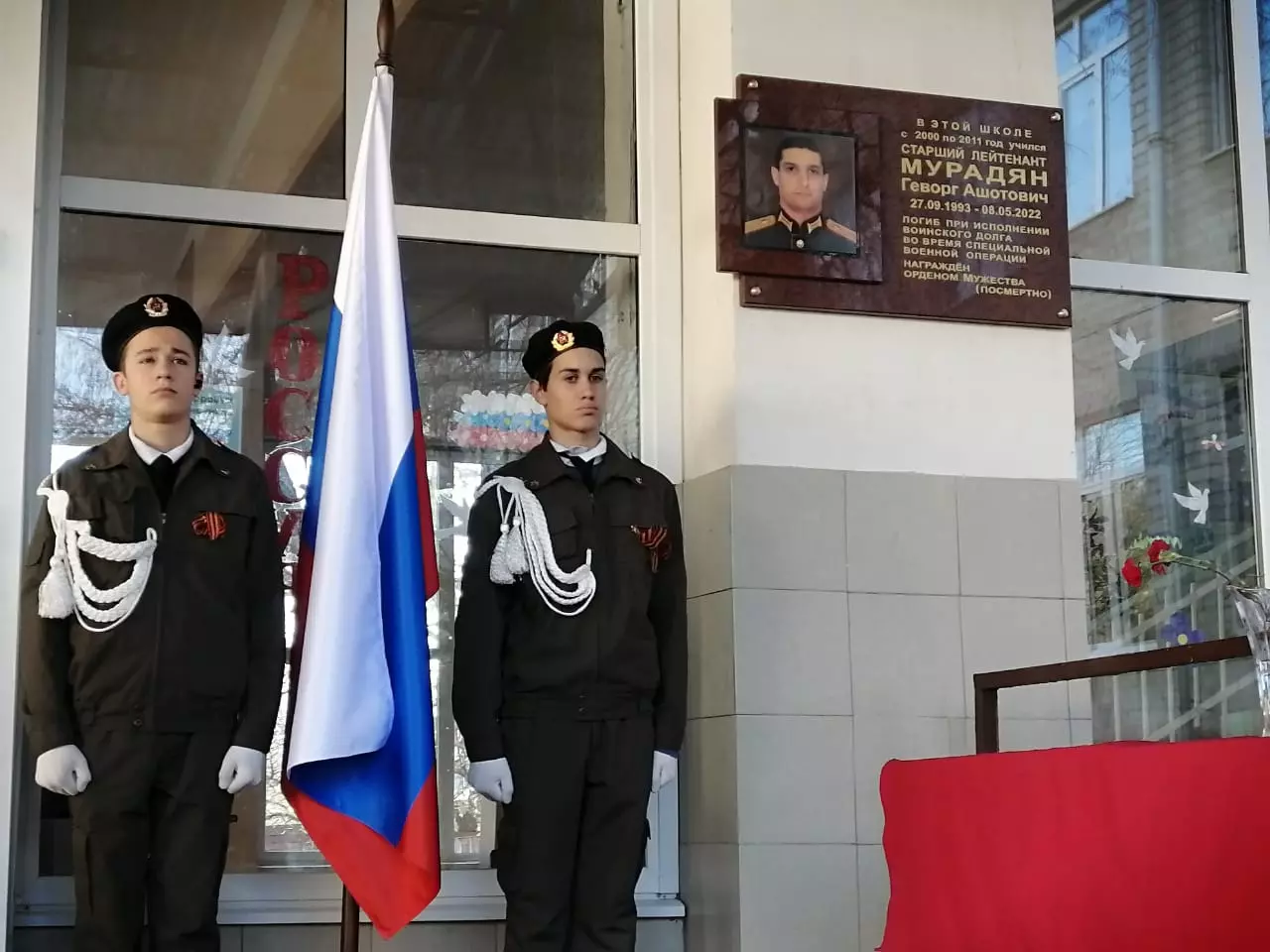 В День героев Отечества, 9 декабря, в Кисловодске открыли памятную доску старшему лейтенанту Геворгу Мурадяну, который погиб в специальной военной операции по освобождению Донбасса.