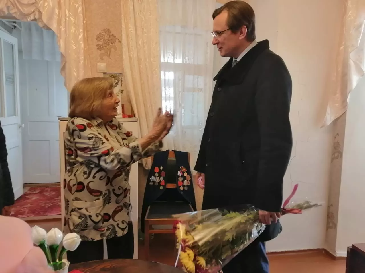 Поздравить долгожительницу пришли глава города Евгений Моисеев, председатель гордумы Любовь Волошина, депутат городской думы Шамиль Касымов, помощник главы Сергей Галий. Кроме цветов и подарков, кисловодской юбилярше передали личное поздравление от президента страны Владимира Путина.