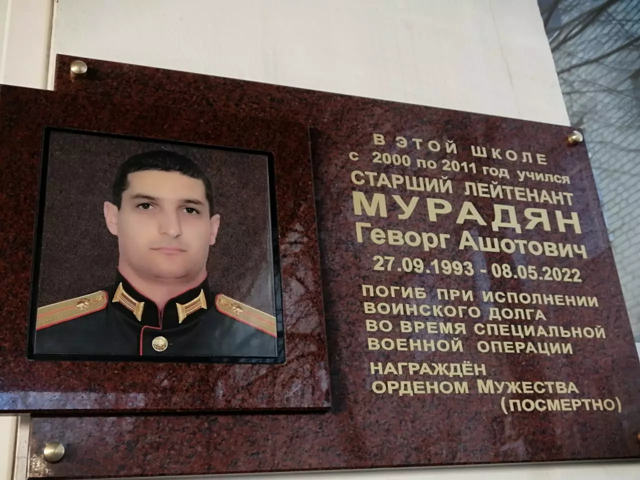 Доску установили на здании лицея N4, где Геворг обучался с 1 по 11 классы и был одним лучших учеников, закончил школу с серебряной медалью. В 2018 году начал военную карьеру в Кантемировской дивизии танковых войск. В этом году в составе войск спецоперации участвовал в освобождении ДНР и ЛНР. Он героически погиб 8 мая 2022 года, выполняя боевую задачу и был посмертно награжден «Орденом Мужества». Защищать Родину — традиция в семье Мурадян. Многие родственники Геворга — военные. В церемонии принял участие отец героя Ашот Мурадян.