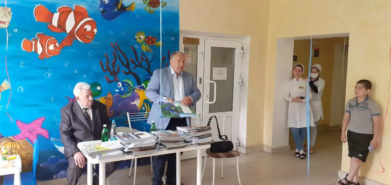 Пациенты кисловодской детской больницы тоже познакомились с доктором, который пишет книги. В размеренном больничном ритме жизни как-то не до праздников, да и развлечений мало. А тут украшенный шарами коридор мигом превратился в музыкально-познавательную комнату, в которой сам автор рассказывает лечебные детские анекдоты собственного сочинения, зачитывает отрывки стихотворений и басен. А потом лично в руки вручает именные книжки. Сначала они будут прочитаны в больничной палате, а потом отправятся домой на книжную полку, чтобы потом не раз напомнить своему владельцу, что дни, проведённые в больнице, полезны не только для физического, но и для эмоционального состояния.