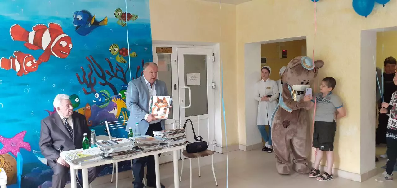 В этот день не в белых халатах, но с намерениями лечить детские души, дружная команда посетила ессентукскую больницу. Всё, что нужно для улыбок пациентов, привезли с собой. Педиатр, автор детских книг, д.м.н. и по совместительству президент ассоциации врачей «Серебряный крест» Юрий Анатольевич Сухонос привёз в дар около тысячи своих книг, средства на их печать были выделены руководством кисловодской здравницы «Виктория».