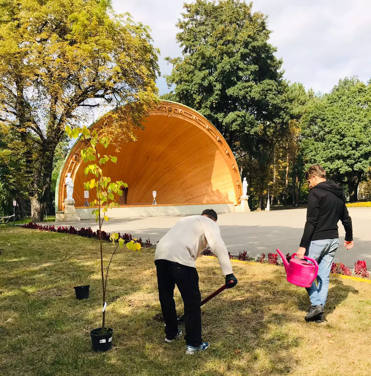 Посадку новых деревьев в рамках «Леса Победы», посвященного памяти погибших в годы Великой Отечественной войны, пришлось продумать особенно тщательно. Как известно, весь комплекс Северо-Кавказской государственной филармонии — объекта культурного наследия федерального значения — вместе с территорией ждет глобальная реконструкция, проект которой будет создаваться на федеральном уровне. Требовалось выбрать участок, на котором деревца не окажутся помехой при грядущих работах. После коллективного обсуждения такое место нашлось, и территорию украсили молодые липы.