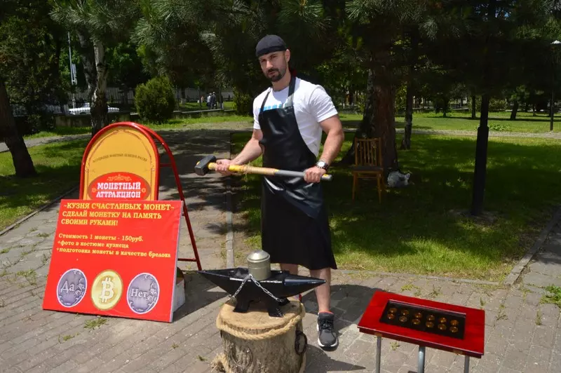 Открыли праздничную программу народные умельцы В этот раз привлек особое внимание Алексей Поляков, изготавливающий сувенирные монеты на специальном станке. Молодые люди пробовали свои силы под чутким руководством мастера. Здесь можно было приобрести и украшения из разных материалов.