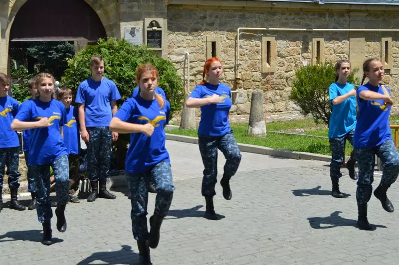На площадке перед военной техникой воспитанники военно-патриотического клуба «Беркут» продемонстрировали навыки владения ружьем, шашкой, нагайкой, технику защиты от вооруженного соперника, показали приемы рукопашного боя. Мальчики и девочки из разных школ занимаются в Межнациональном культурном центре «Дружба» под руководством Микитась М.Р. Кроме боевого искусства ребята изучают воинскую культуру, которая состоит из славянского фольклора, истории, этнографии, жизнеустройства, воинского мировоззрения, истории нашего государства, его боевой славы.