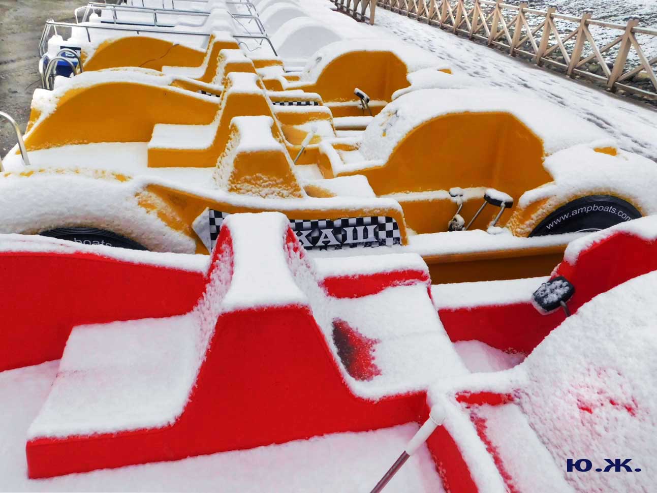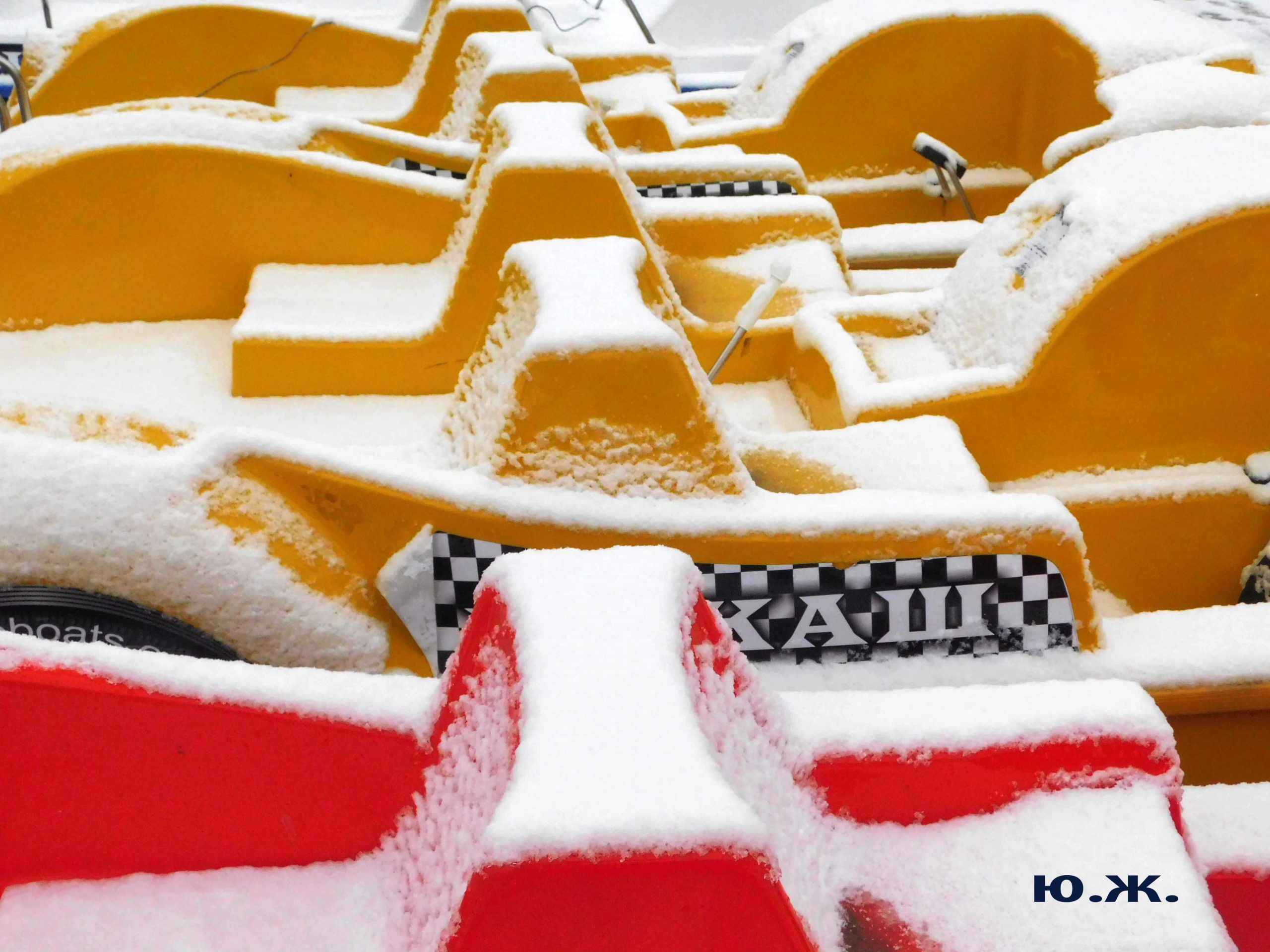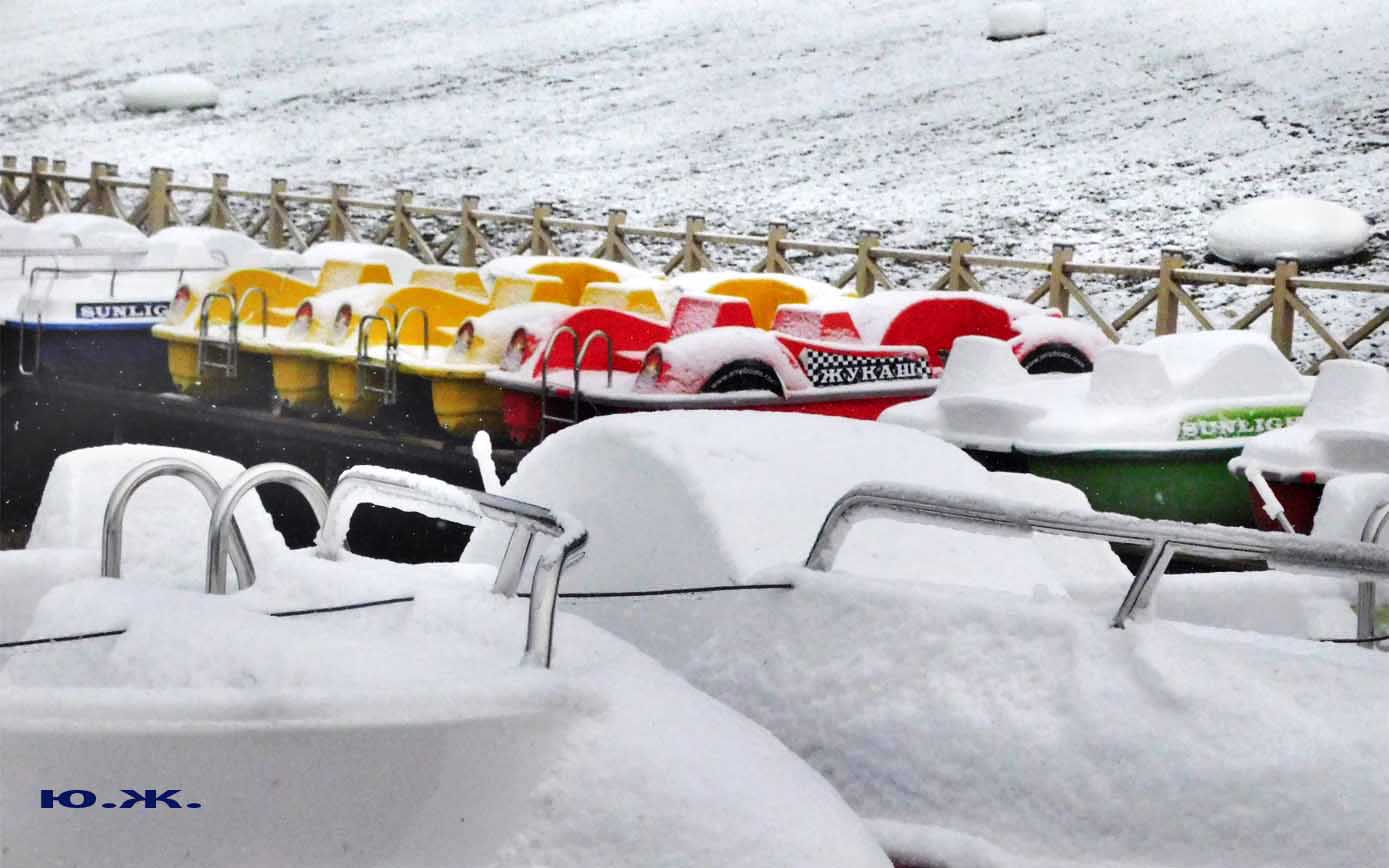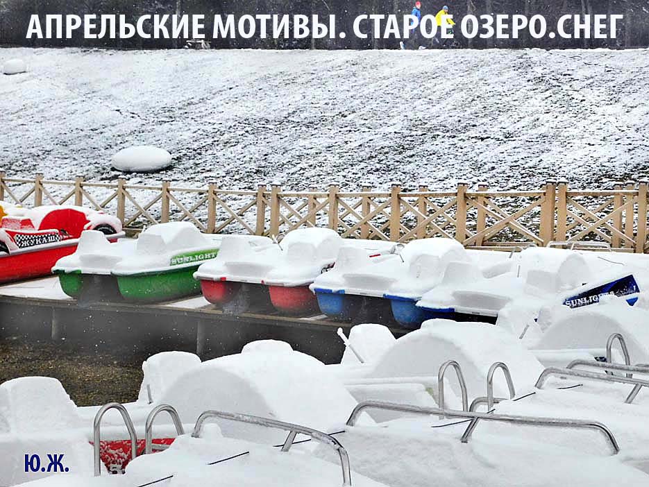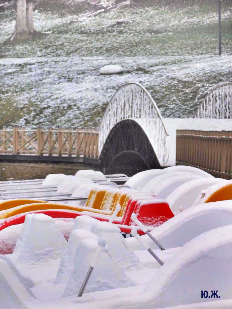 Красиво смотрятся припорошенные снегом деревья вокруг Озера. Цветение продолжается. Для меня красивые, обледеневшие деревья, чем пышнее и гуще, тем интереснее съемка. А катамараны под огромной шапкой снега выстроились, как на конкурсе красоты для показа. Они были вне конкуренции.