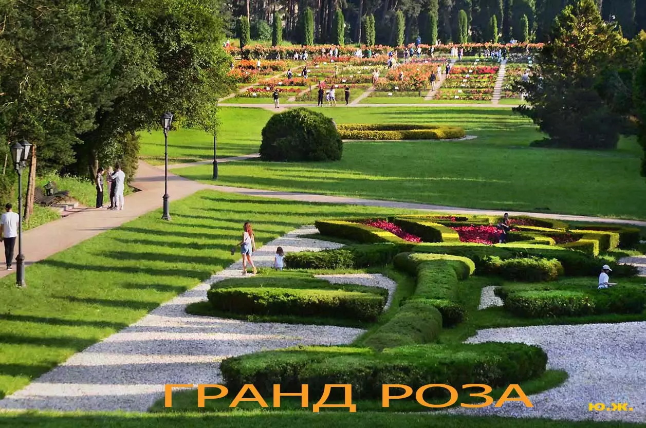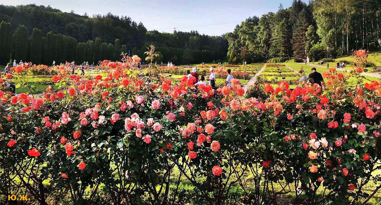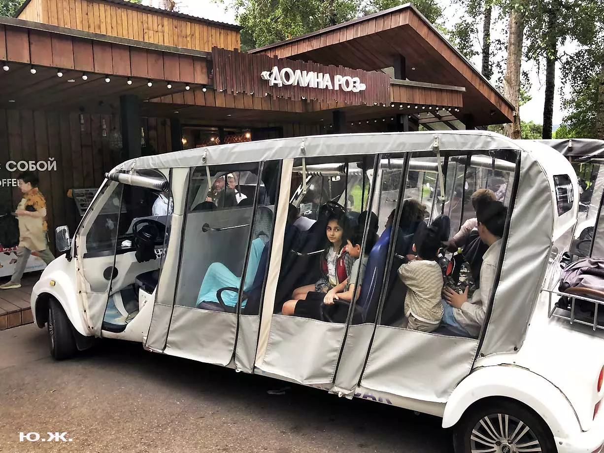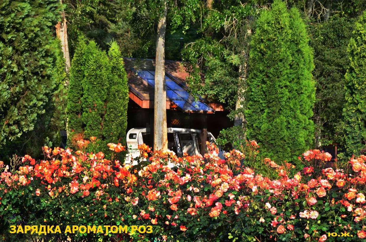 В этом году розы здесь особенно удались, кто здесь бывал раньше, тот оценит. И прочитайте таблички — из каких стран они к нам прибыли. Лучшее цветение было в конце июня — первое. Пока у домика с надписью «Долина Роз» заряжаются электрокары, их пассажиры заряжаются ароматами роз, обходя многочисленные клумбы с цветами, знакомясь с информацией на табличках, знакомясь так же и с самой живописной долиной…