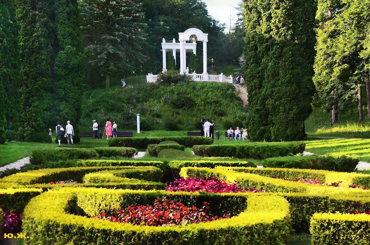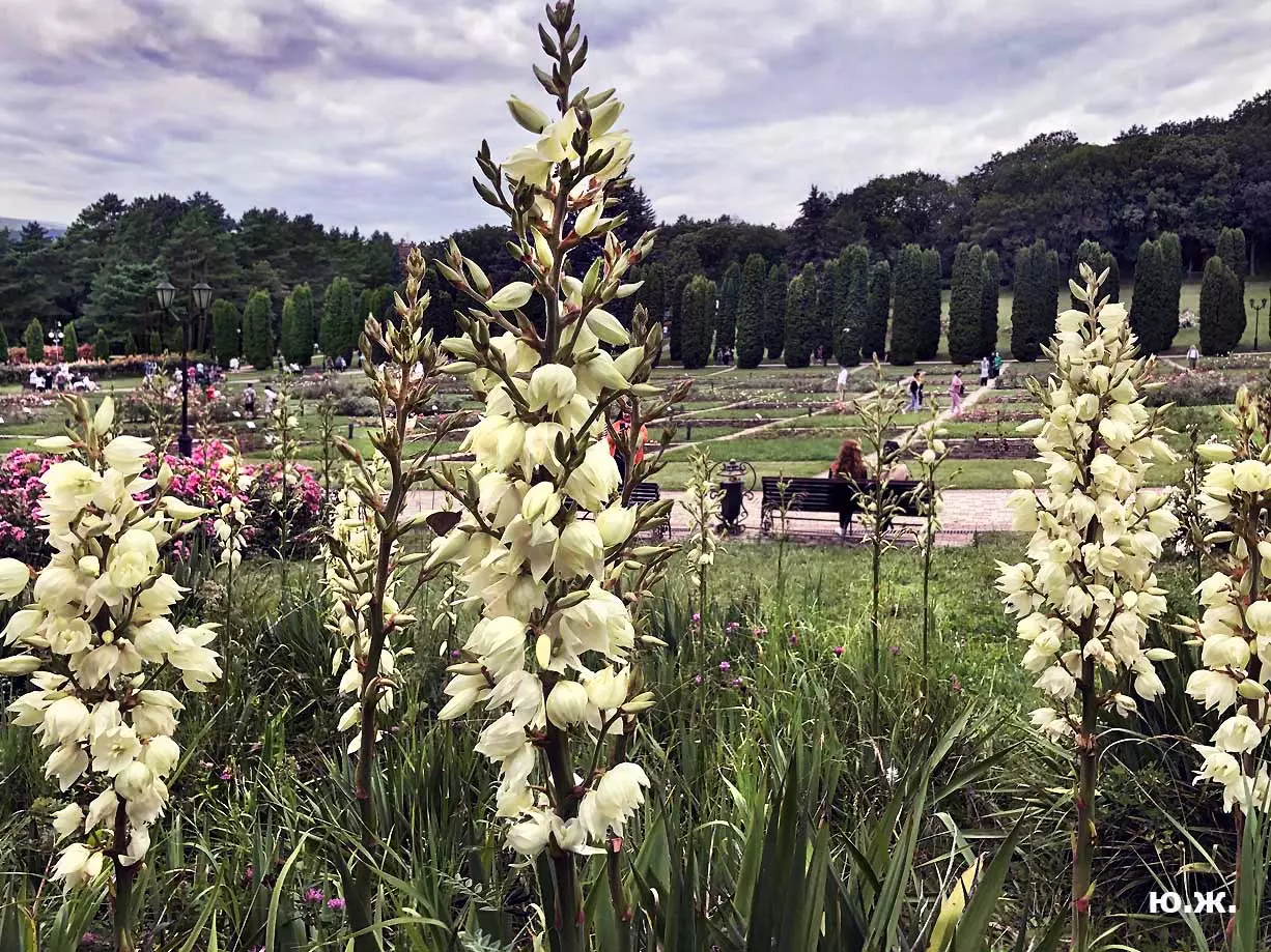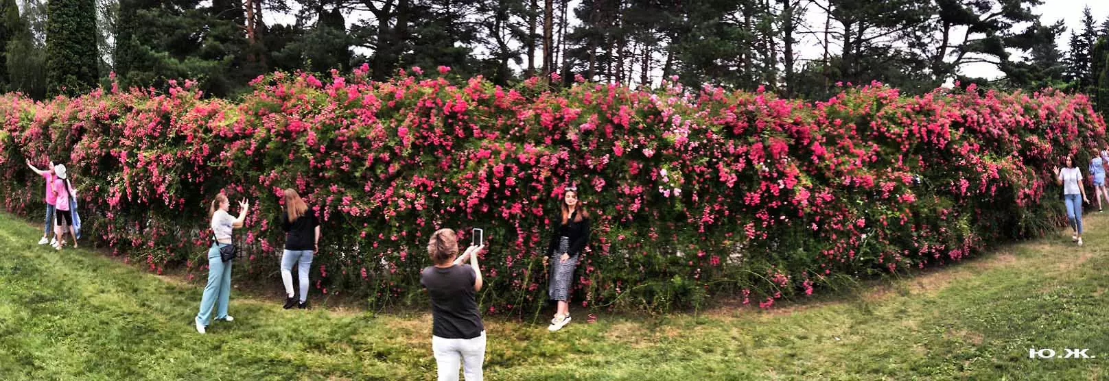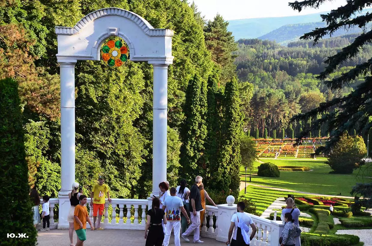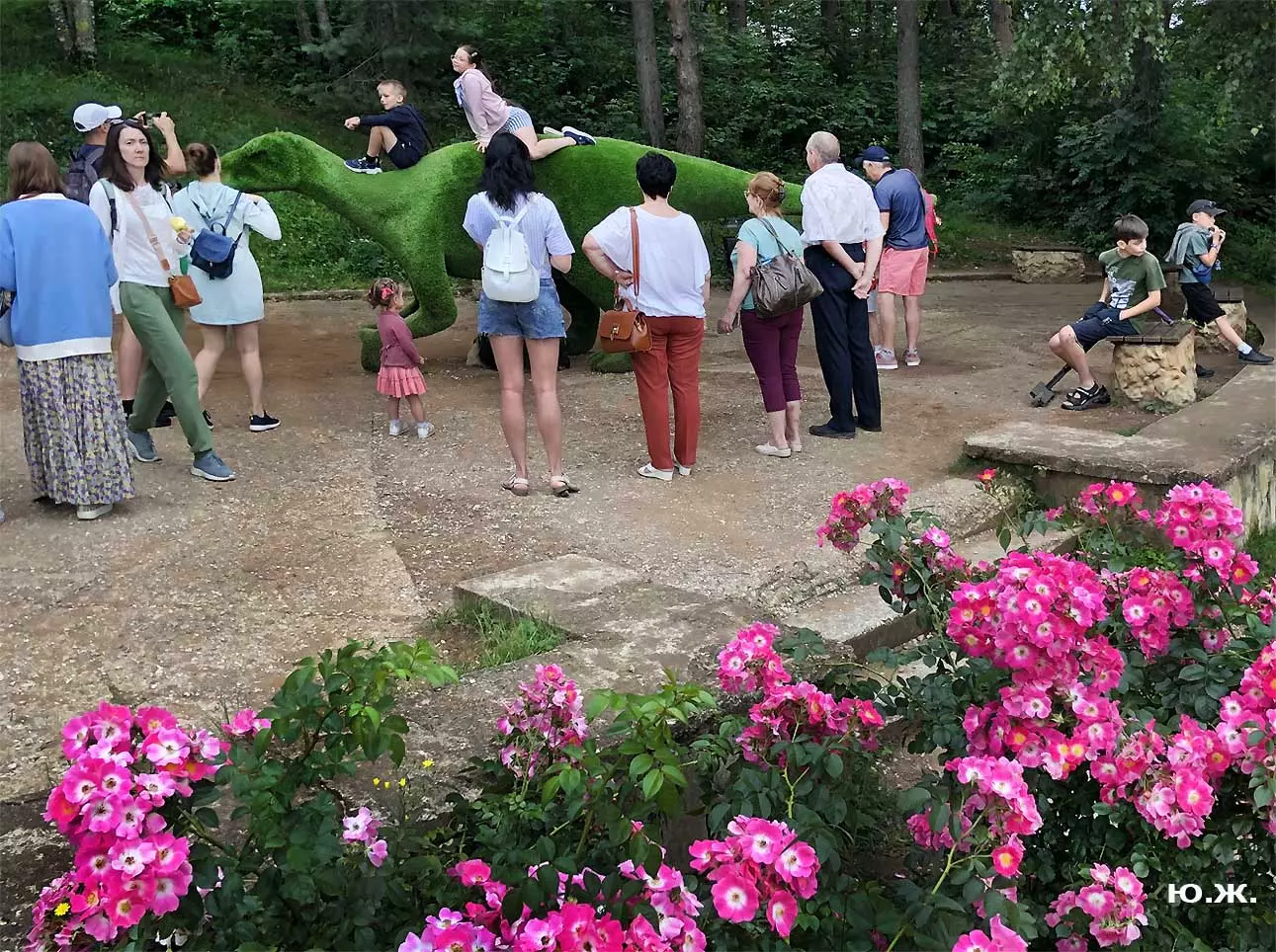 В этом году розы здесь особенно удались, кто здесь бывал раньше, тот оценит. И прочитайте таблички — из каких стран они к нам прибыли. Лучшее цветение было в конце июня — первое. Пока у домика с надписью «Долина Роз» заряжаются электрокары, их пассажиры заряжаются ароматами роз, обходя многочисленные клумбы с цветами, знакомясь с информацией на табличках, знакомясь так же и с самой живописной долиной…