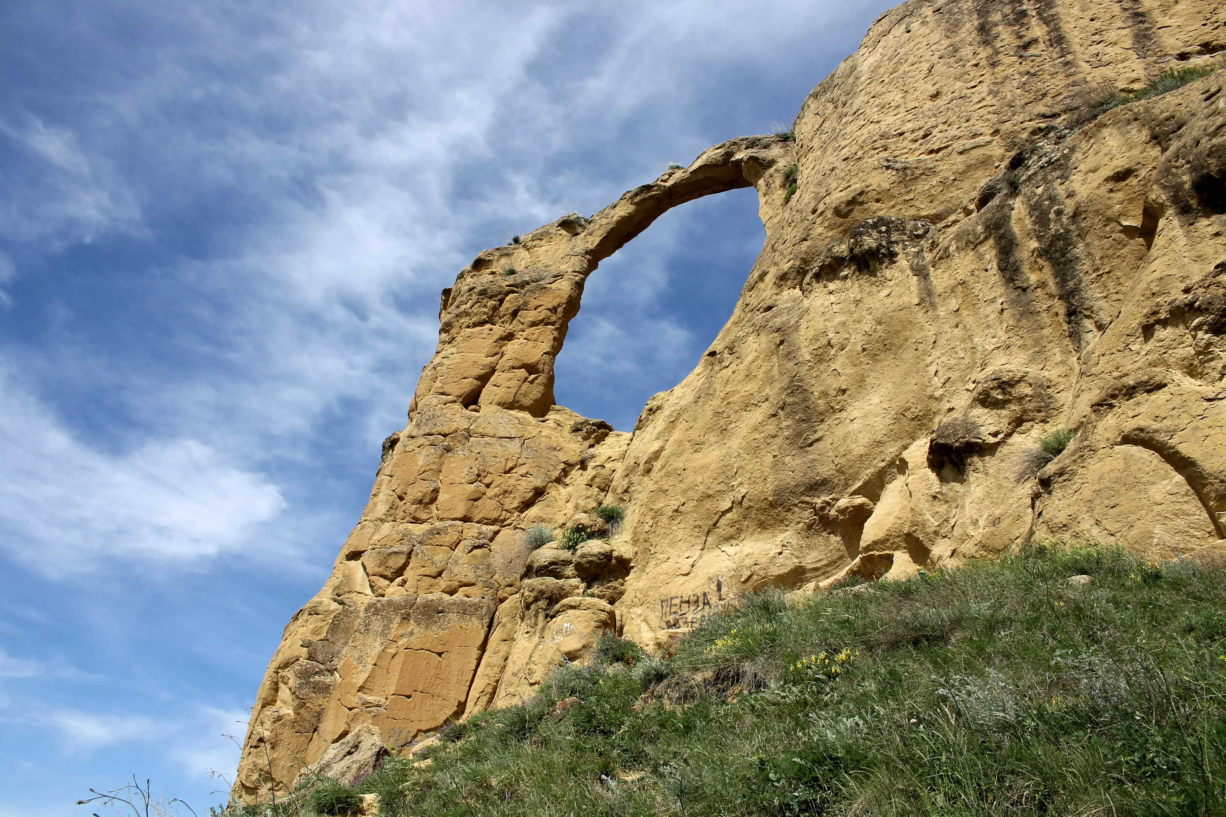Эту достопримечательность создала сама природа, благодаря ветрам, большим перепадам температур, эрозии и другим природным явлениям, которым подвергались горы Боргустанского хребта. Здесь, на высоте около 900 метров, образовались гроты причудливой формы в виде выемок в скале, и только одна из них с огромным 8-метровым проемом.