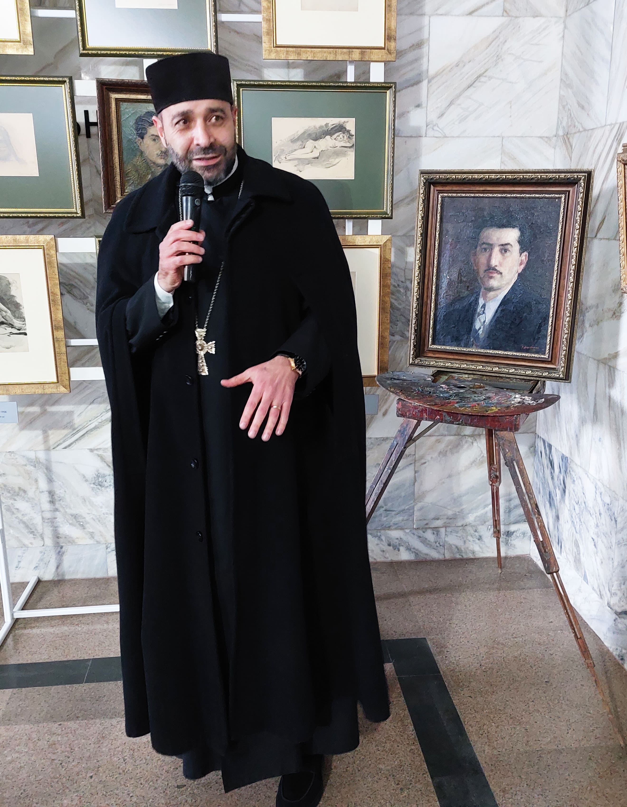 Первым из приглашённых на торжественное открытие выставки выступил настоятель церкви Святого Вардана Мамиконяна Тер-Саркис. Он убеждён, что смерти нет, потому что человек, созданный по подобию Господа, тоже творец: