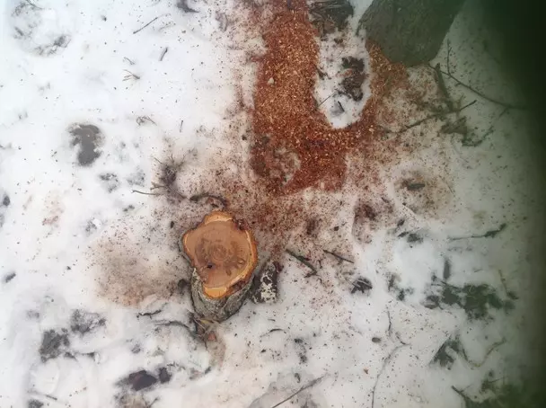 Сегодня, 25 января, в обеденное время во дворе дома по пр. Цандера, 3 рабочие спилили две сливы под видом сухостоя. НА самом деле, деревья еще прошлым летом активно плодоносили. Жалоб про них от жильцов не было. А вот явно засохшую ель рабочие не тронули. Сказали, мол, в Акте она не указана. Хотя жильцы просили в течение двух лет управляющую компанию «Перспектива» спилить эту ель. Им ответили, что за незаконный снос компанию могут оштрафовать на 1 млн рублей.