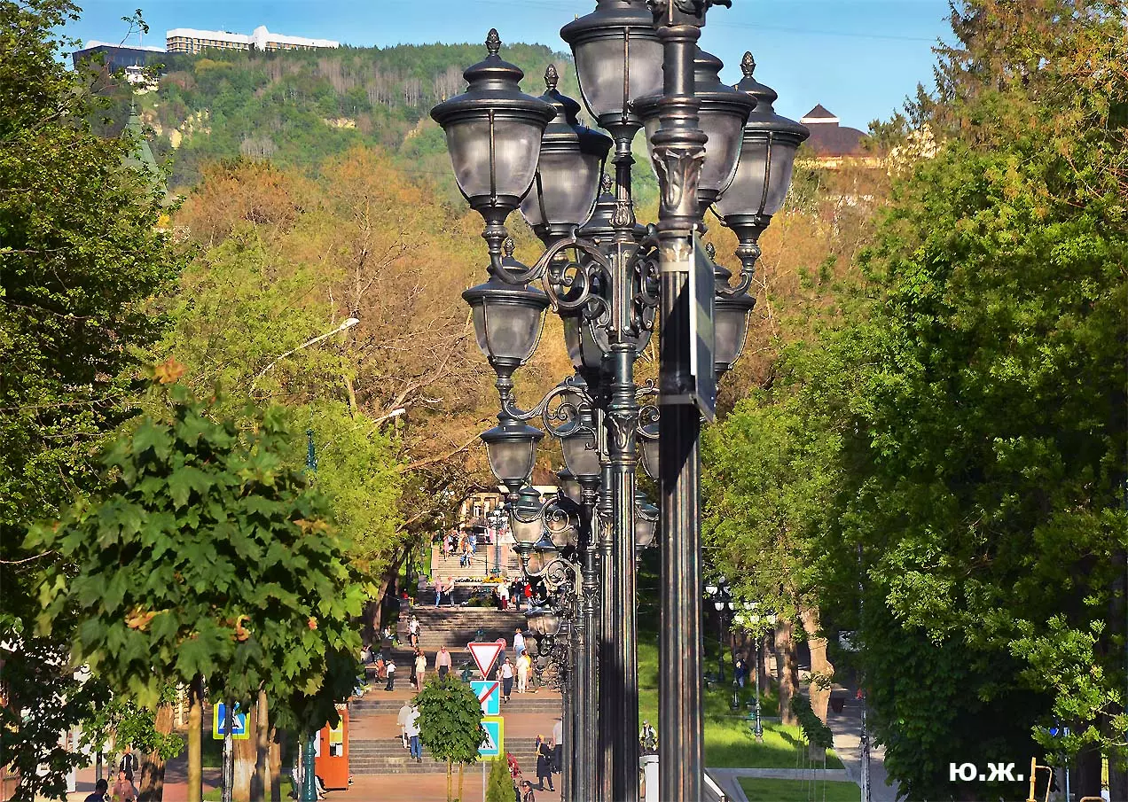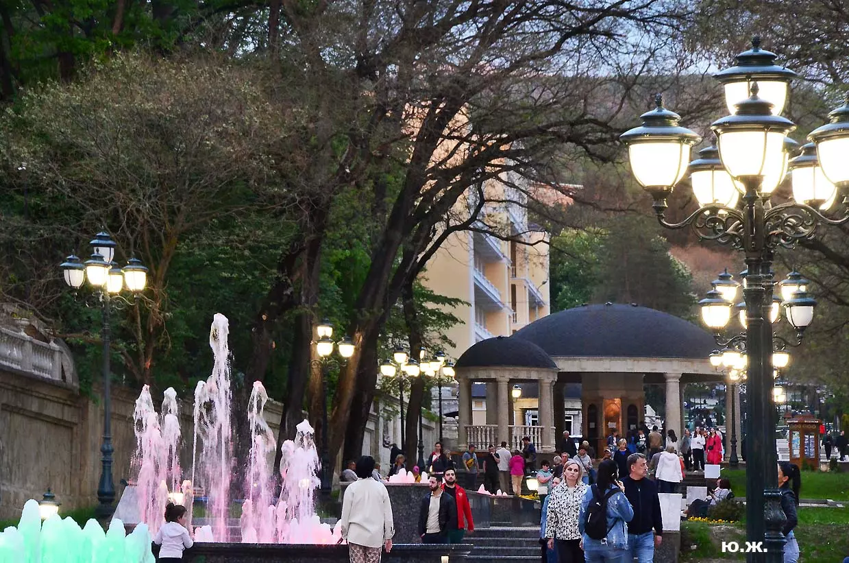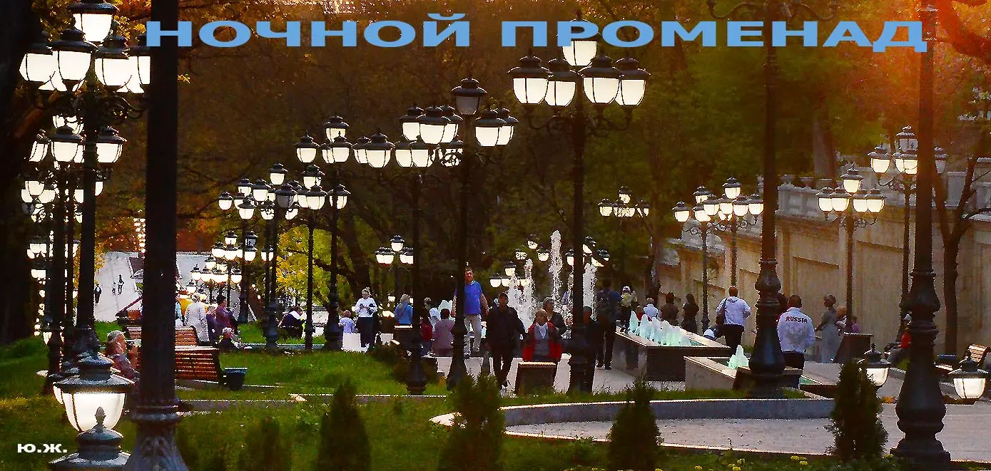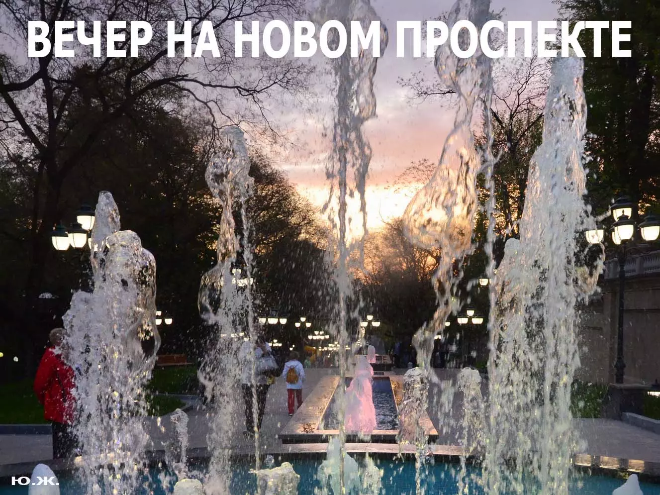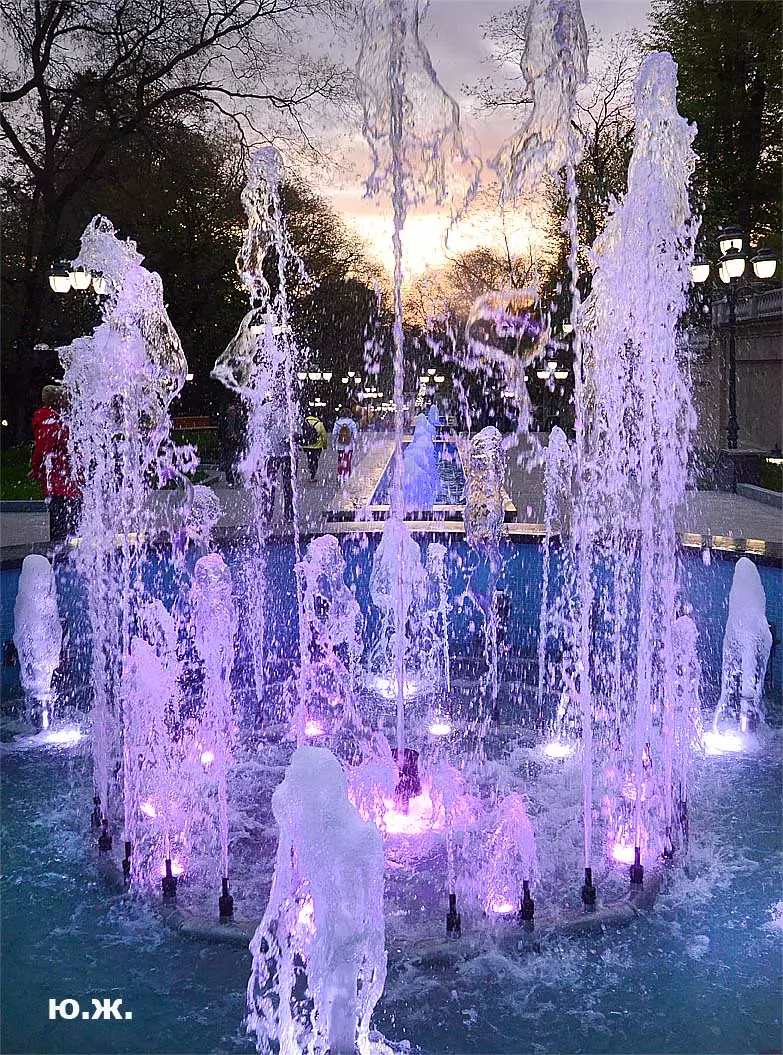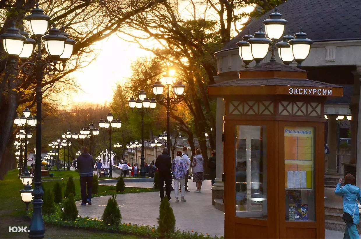 Сегодня у нас вечерний проспект с его фонтанами, недавно запущенными, с его неспешным променадом недавно пришедшим сюда с Курортного бульвара, но имеющим не такой ровный рельеф как на проспекте. Здесь много ступенек поднимающих нас вверх и спускающих вниз, у него большая протяженность, а значит, помимо всего позитивного, как теренкур, он будет тренировать и наши ноги, сердце, легкие…