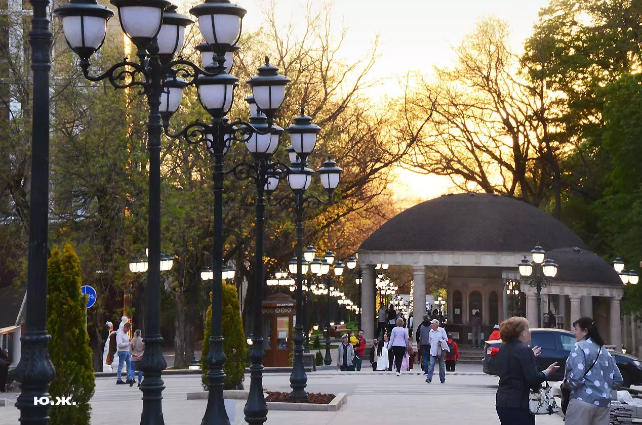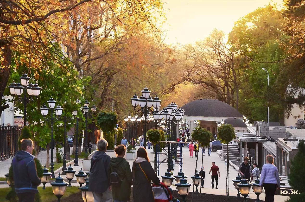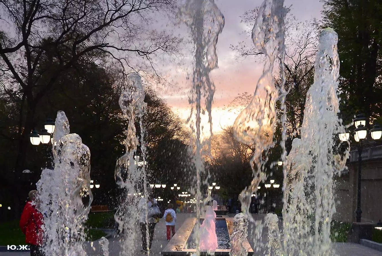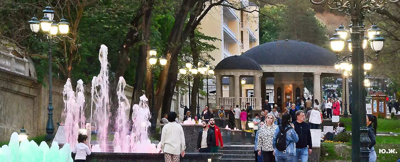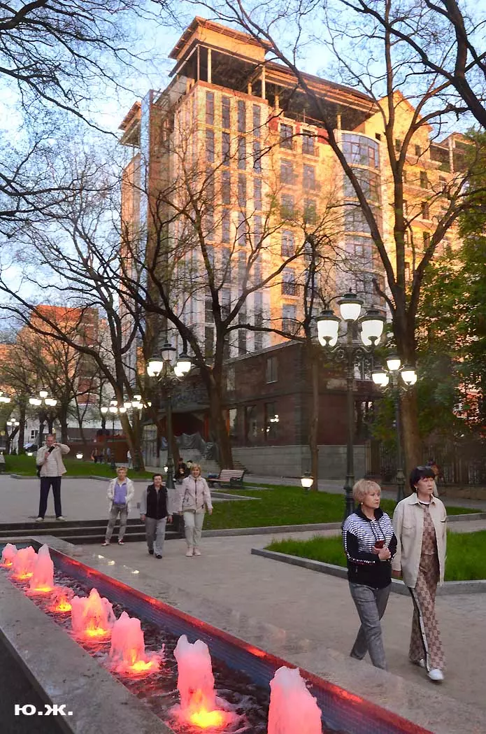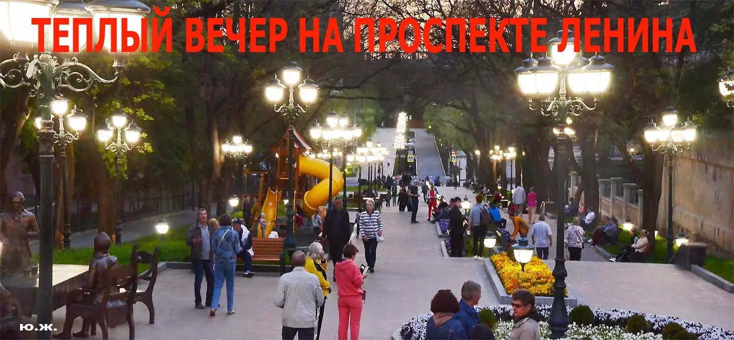 Сегодня у нас вечерний проспект с его фонтанами, недавно запущенными, с его неспешным променадом недавно пришедшим сюда с Курортного бульвара, но имеющим не такой ровный рельеф как на проспекте. Здесь много ступенек поднимающих нас вверх и спускающих вниз, у него большая протяженность, а значит, помимо всего позитивного, как теренкур, он будет тренировать и наши ноги, сердце, легкие…