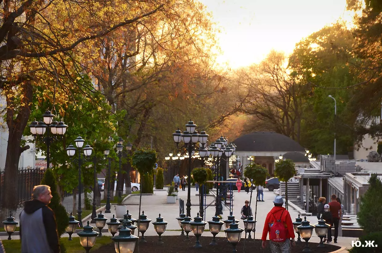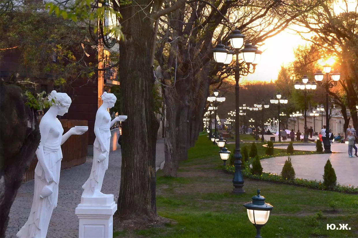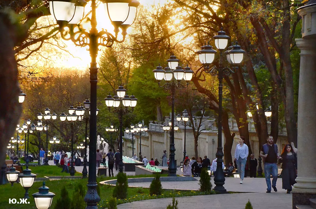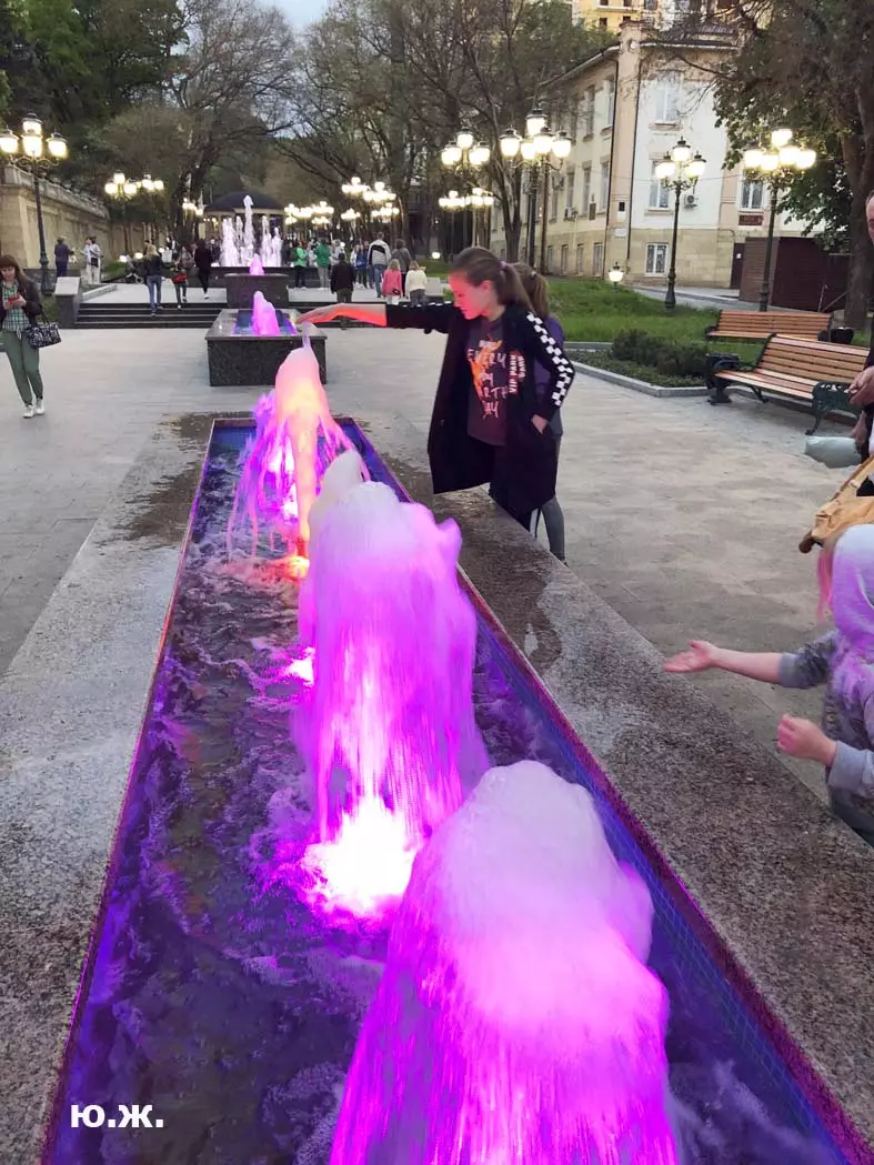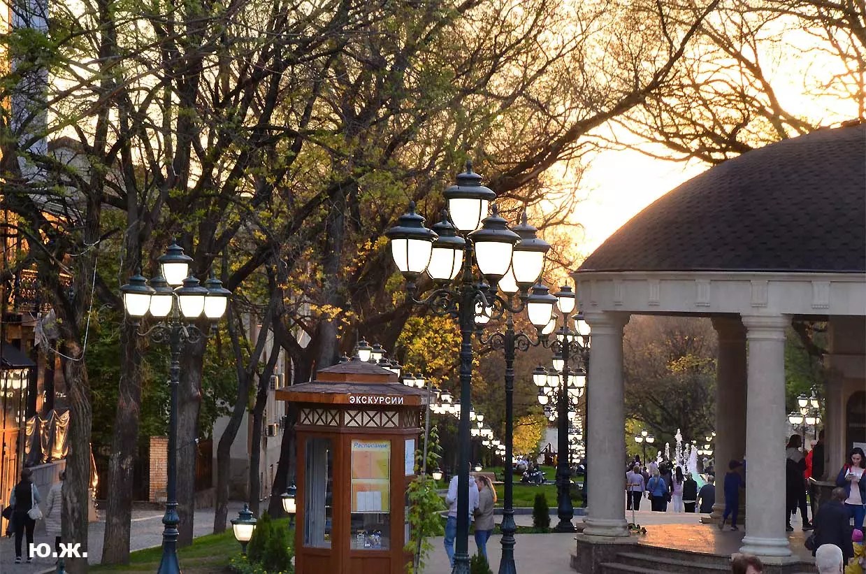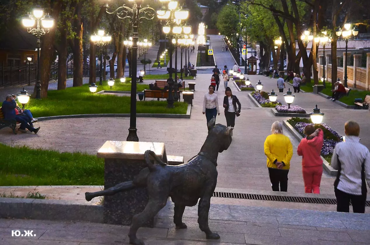 Сегодня у нас вечерний проспект с его фонтанами, недавно запущенными, с его неспешным променадом недавно пришедшим сюда с Курортного бульвара, но имеющим не такой ровный рельеф как на проспекте. Здесь много ступенек поднимающих нас вверх и спускающих вниз, у него большая протяженность, а значит, помимо всего позитивного, как теренкур, он будет тренировать и наши ноги, сердце, легкие…