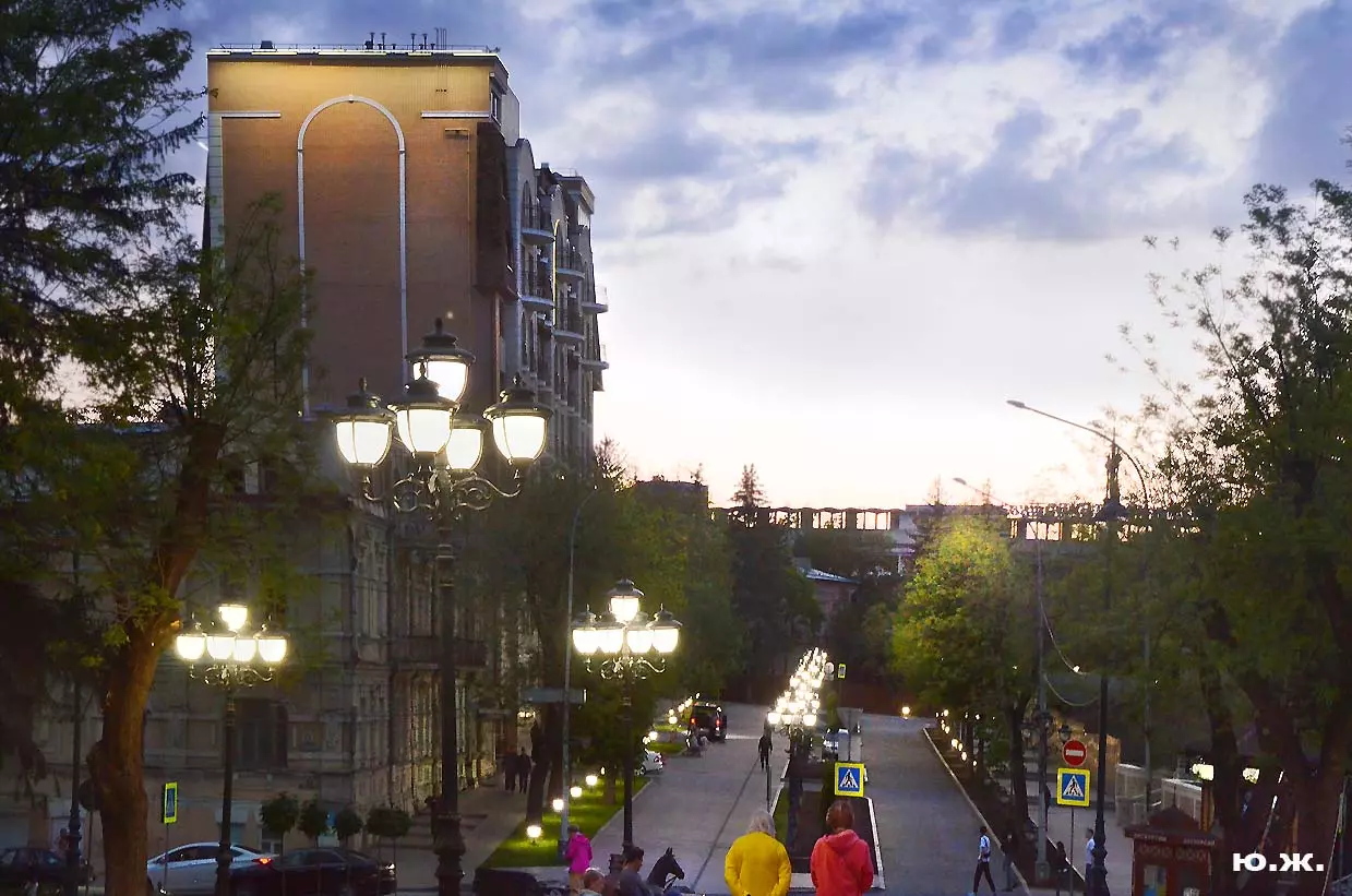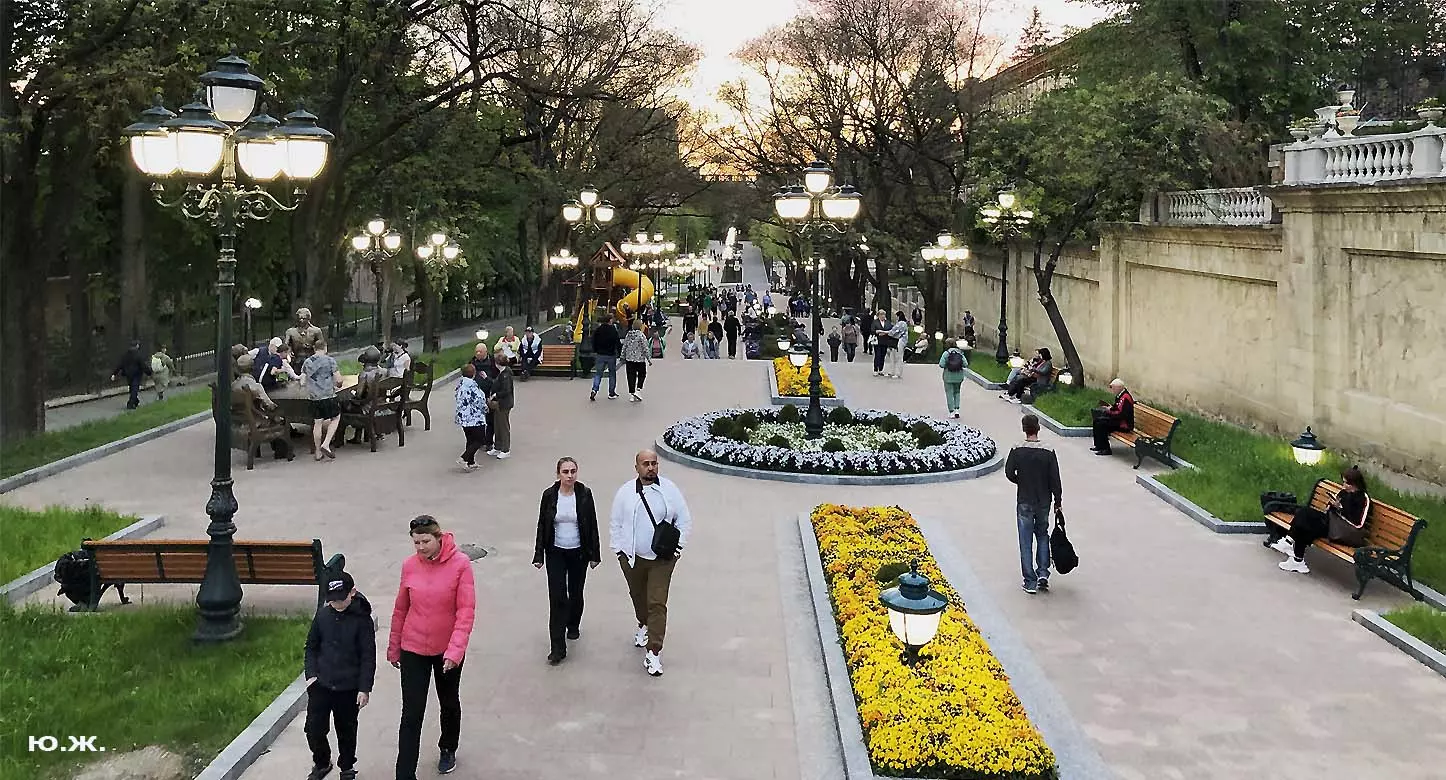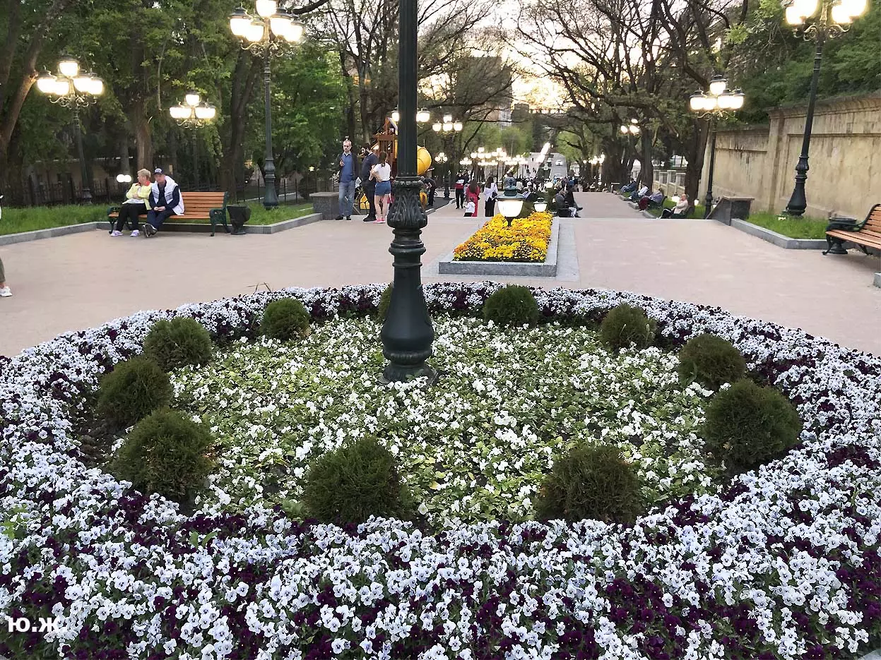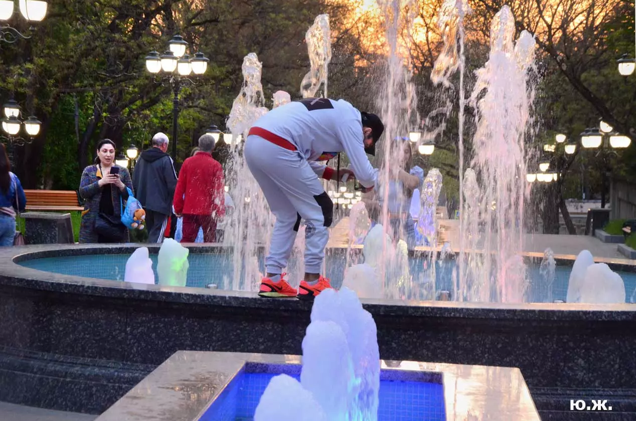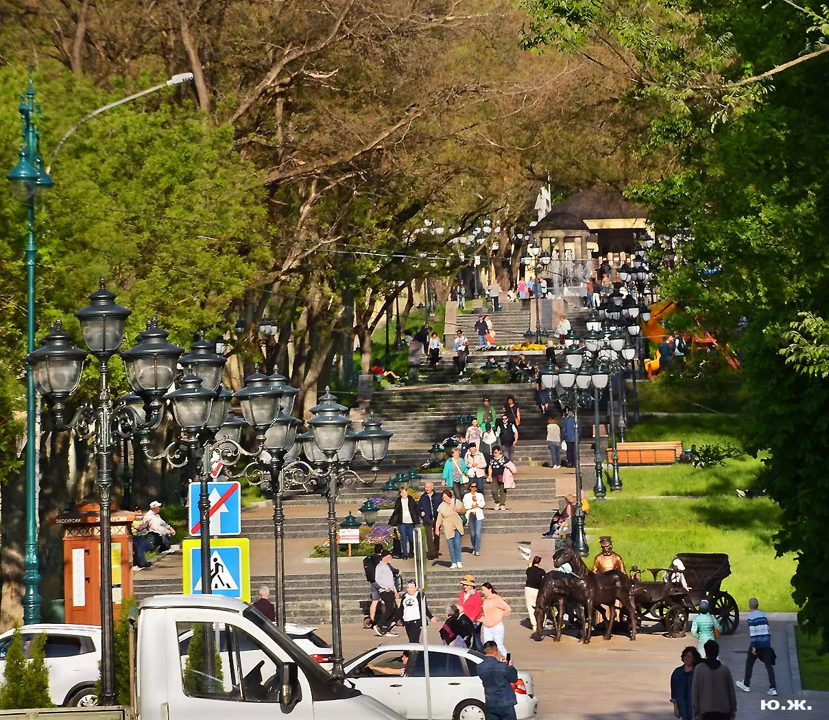 Сегодня у нас вечерний проспект с его фонтанами, недавно запущенными, с его неспешным променадом недавно пришедшим сюда с Курортного бульвара, но имеющим не такой ровный рельеф как на проспекте. Здесь много ступенек поднимающих нас вверх и спускающих вниз, у него большая протяженность, а значит, помимо всего позитивного, как теренкур, он будет тренировать и наши ноги, сердце, легкие…