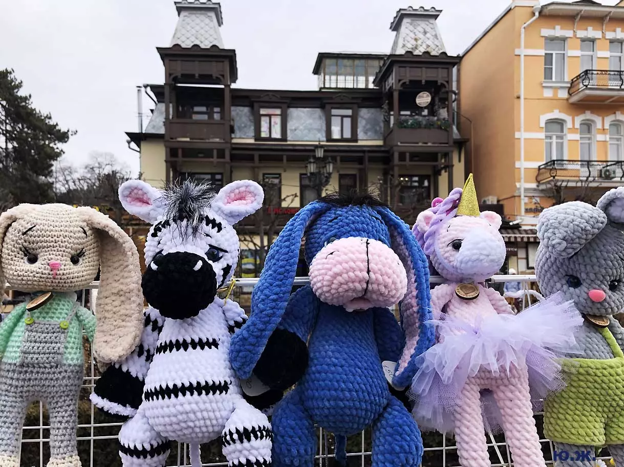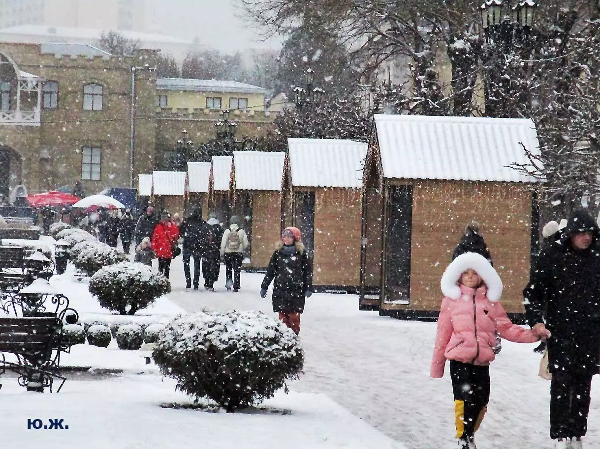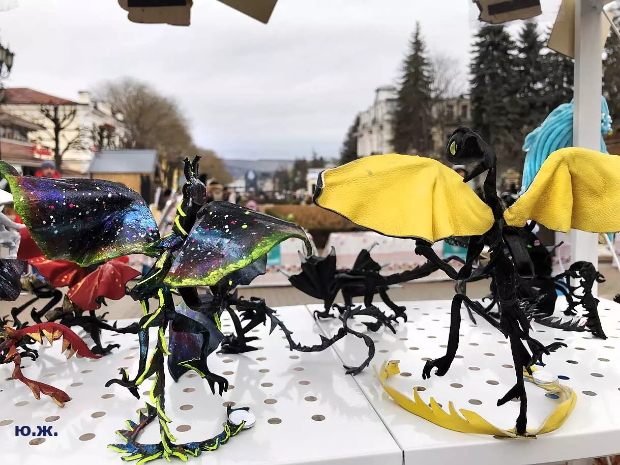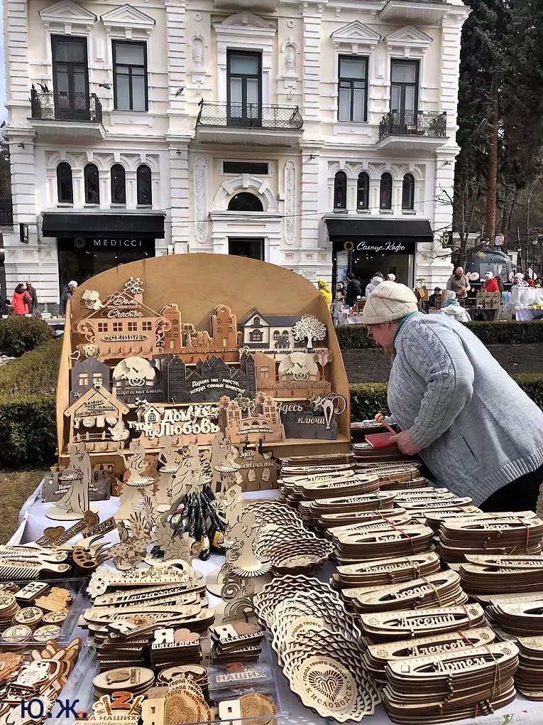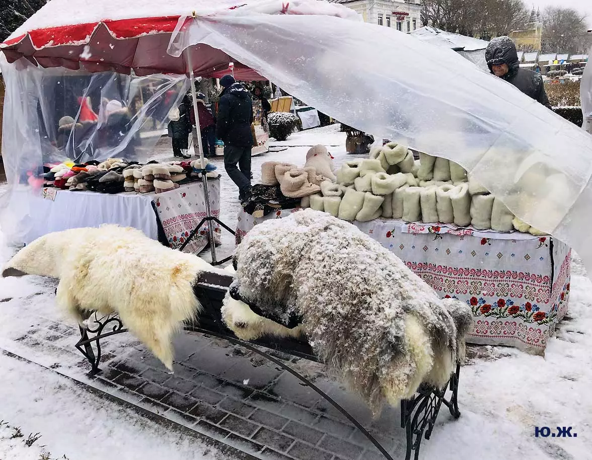 На Курортном бульваре вовсю развернулась ярмарка мастеров прикладного искусства. Действительно, наш край богат на таланты. Очень красиво смотрятся изделия на белом снегу.