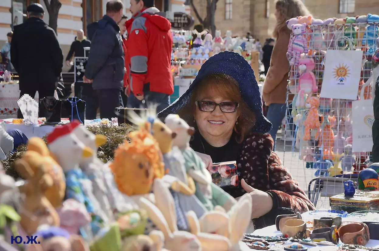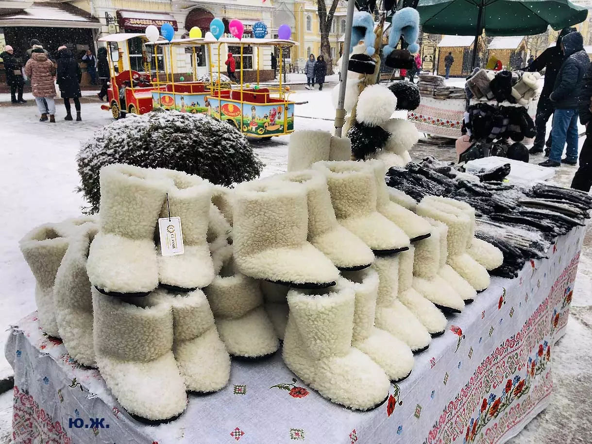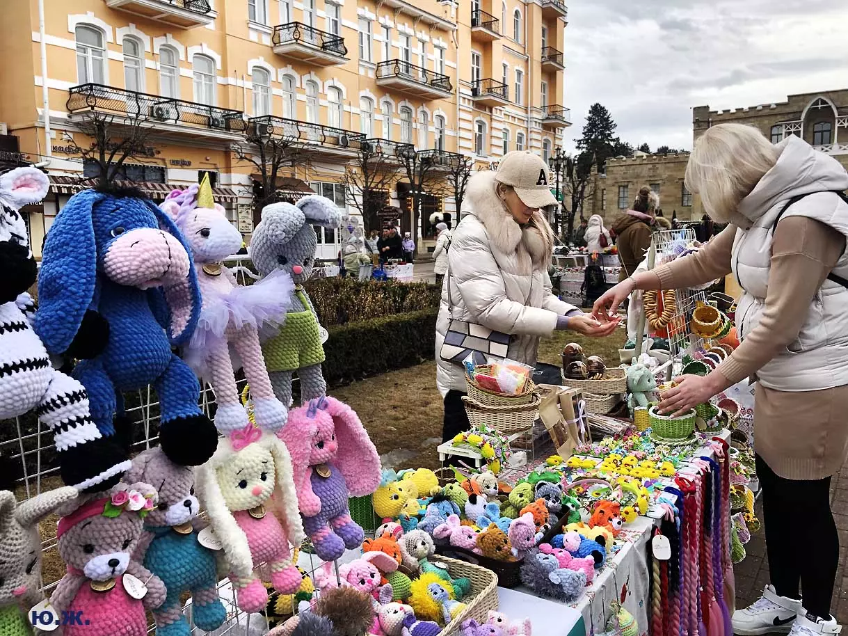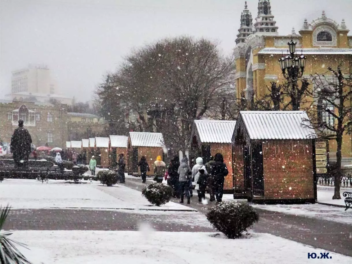 На Курортном бульваре вовсю развернулась ярмарка мастеров прикладного искусства. Действительно, наш край богат на таланты. Очень красиво смотрятся изделия на белом снегу.