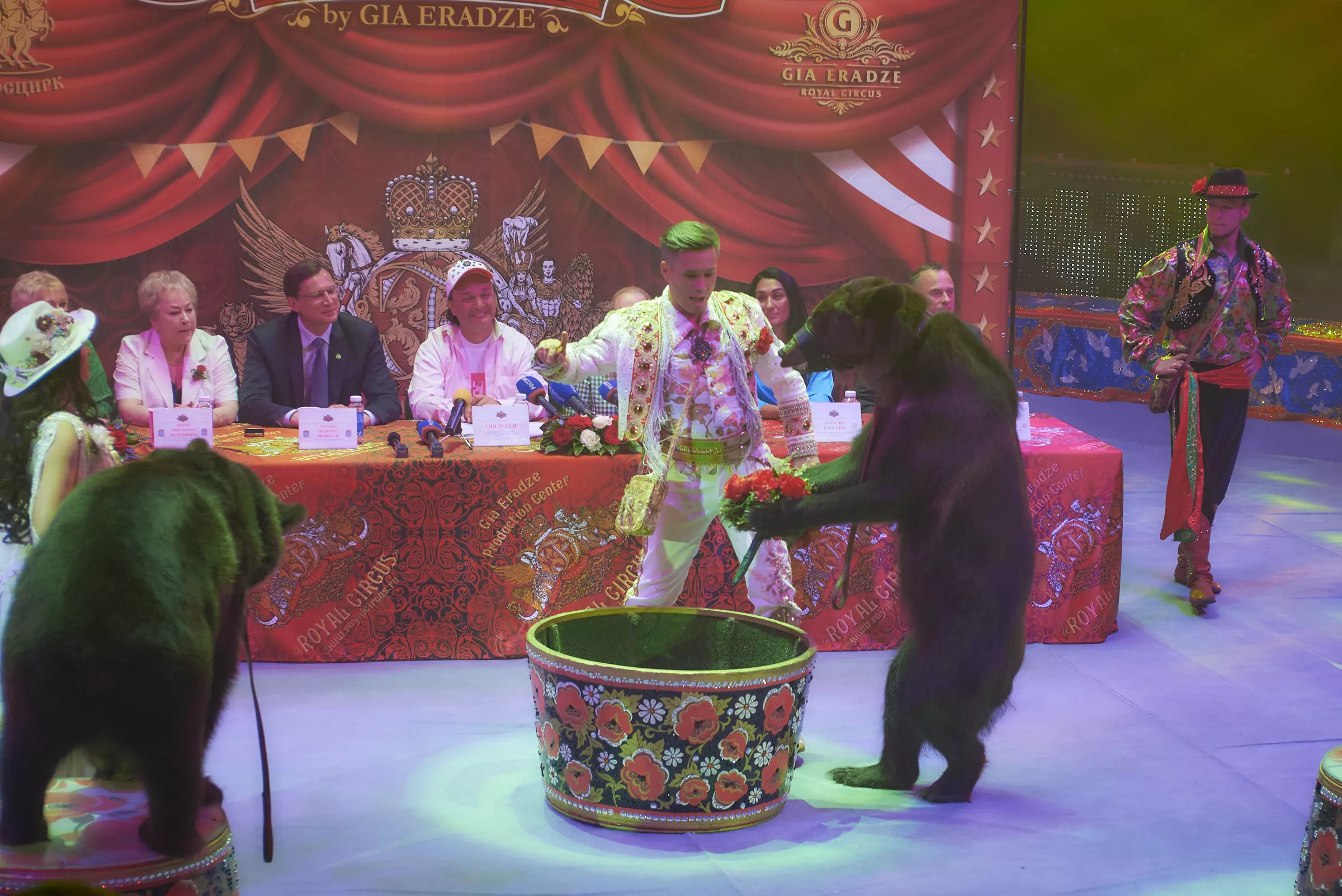 Повод — пресс-конференция для журналистов и блогеров с мэтром циркового искусства, Заслуженным артистом России Гией Эрадзе. Оригинальный, а если точнее, королевский приём прессы, которая одна из первых расскажет, что ждёт всех на премьере нового шоу «5 континентов», совместного проекта Российской государственной цирковой компании и продюсерского центра «Королевский цирк» Гии Эрадзе.