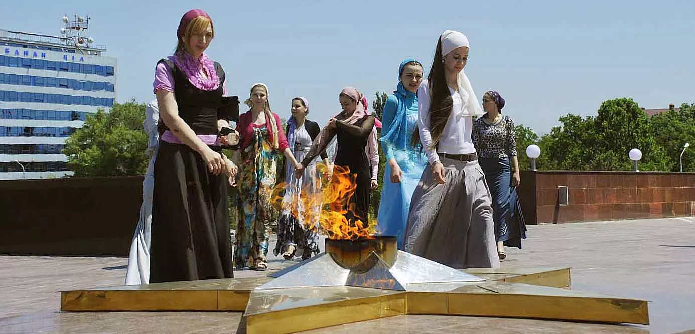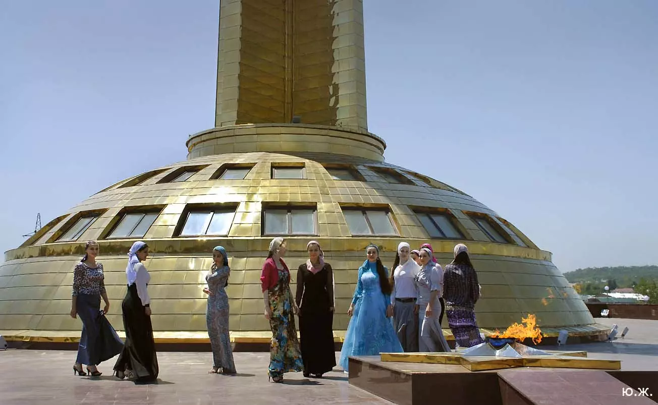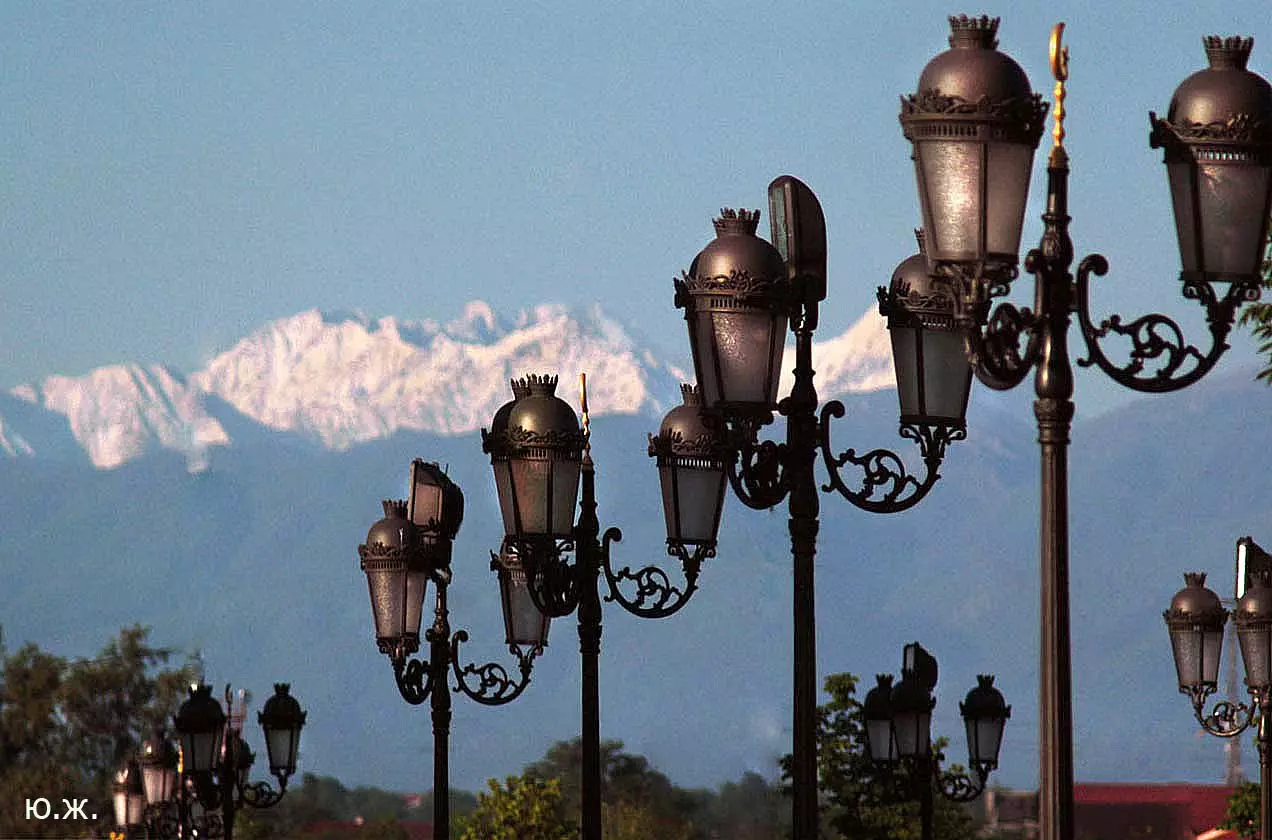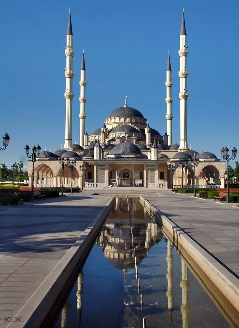 Лучшее время для съемок там, конечно, май, когда сочная, пышная южная растительность бывает нежно-зеленых оттенков, цветут крупные дикие алые маки, а когда идет весеннее становление погоды и в небе часто появляются красивые облака — случаются быстро проходящие дожди, делающие атмосферу чистой и прозрачной, без атмосферной дымки, и изумительный снежный Кавказский хребет предстает во всей своей красе… Так все и складывалось. За мной посылают автомобиль и мы направляемся на юго-восток, как раз при красивых кучевых облаках. Не люблю снимать при чистом, пустом, не интересном небе — такое большое пространство остается незаполненным. После Георгиевска короткий сильный ливень, появляется радуга, останавливаемся это запечатлеть — пригодится. Начинаются красивые места, вдоль трассы видим дикие маки. С низкой точки съемки, с земли, они в кадре оказываются вместе со сверкающим белизной снежным хребтом. Уже к вечеру въезжаем в Грозный, и я прошу сразу же подъехать к знаменитой Мечети «Сердце Чечни». Здесь огромное пространство, все в зелени, роскошных клумбах, мощных фонтанах. Все в великолепной подсветке. Недалеко от Мечети растут, поднимаются вверх билдинги, высотки. Пока еще небо темно голубое, а силуэты высоток, башни минаретов и сам город четко прорисовываются на его фоне, делаю несколько пробных снимков вокруг. Завтра начинается настоящая съемка. Еще несколько минут — и мы уже в темноте въезжаем на красивую территорию, где много отдельно стоящих коттеджей. В один из них и выгружаем мое оборудование: штативы, свет, цифровую фотоаппаратуру — правда, на то время она была еще не так совершенна, как сейчас. В заключение этого дня представляют моего водителя, он же все эти дни будет меня охранять и — оберегать. Правда,так и не узнал, от кого.
