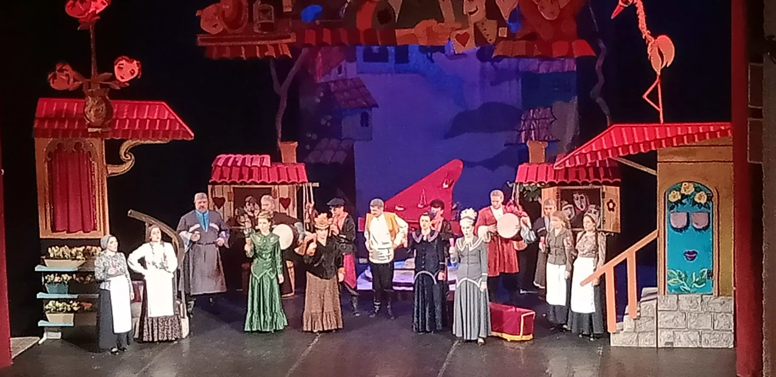 Костюмы персонажей профессионально продуманы – яркие, пышные, привлекательные наряды, выделяющие каждого героя спектакля.