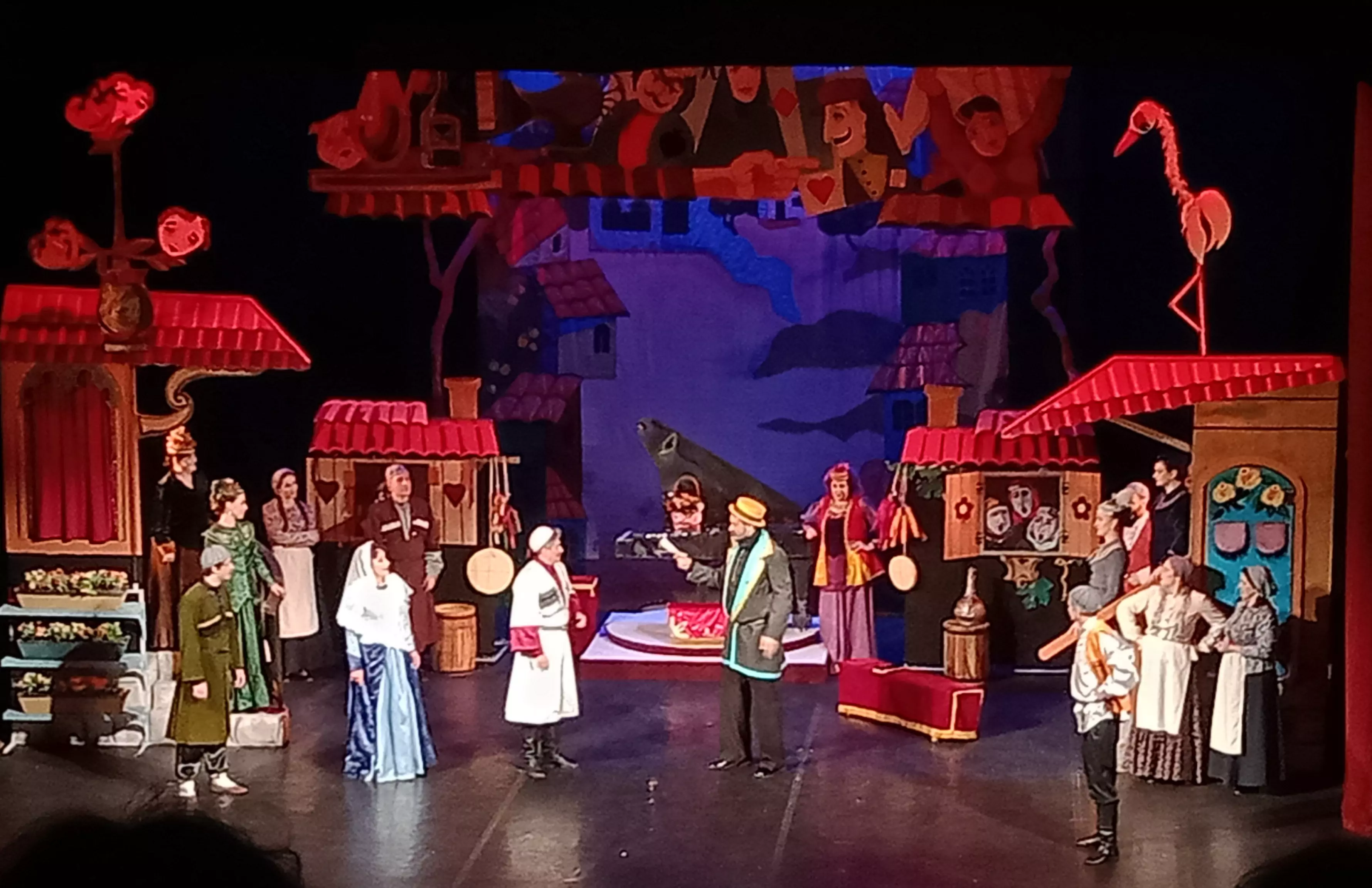 С самого начала представления в глаза бросаются детализированные декорации, создающие образ Тифлиса (Тбилиси) образца XIX века.
