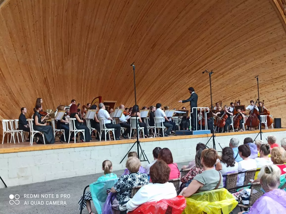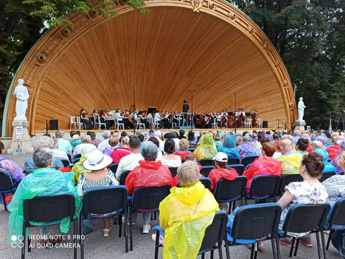 На сцене музраковины играл знаменитый Академический симфонический оркестр Северо-Кавказской государственной филармонии имени В.И.Сафонова под управлением главного дирижёра, Лауреата премии президента для молодых деятелей культуры 2020 года Димитриса Ботиниса. На летней площадке, под открытым небом, не осталось ни одного свободного кресла. Музыка, любимая многими поколениями, заставила отступить ни с чем даже летний дождик, периодически пытавшийся оттянуть на себя внимание публики. Прикрывшись зонтами и легкими непромокаемыми накидками, заботливо выданными администрацией филармонии, поклонники короля вальсов даже не думали расходиться, наслаждаясь бессмертными произведениями австрийского композитора, виртуозной игрой оркестра, мастерством и обаянием дирижера. В их исполнении прозвучали увертюра к опере «Цыганский барон», Египетский марш и Персидский марш, Полька Анны, Полька «Трик-Трак» и Венгерская полька и, конечно, вальсы: «Розы юга», «Жизнь артиста», «Венская кровь», «Весенние голоса».