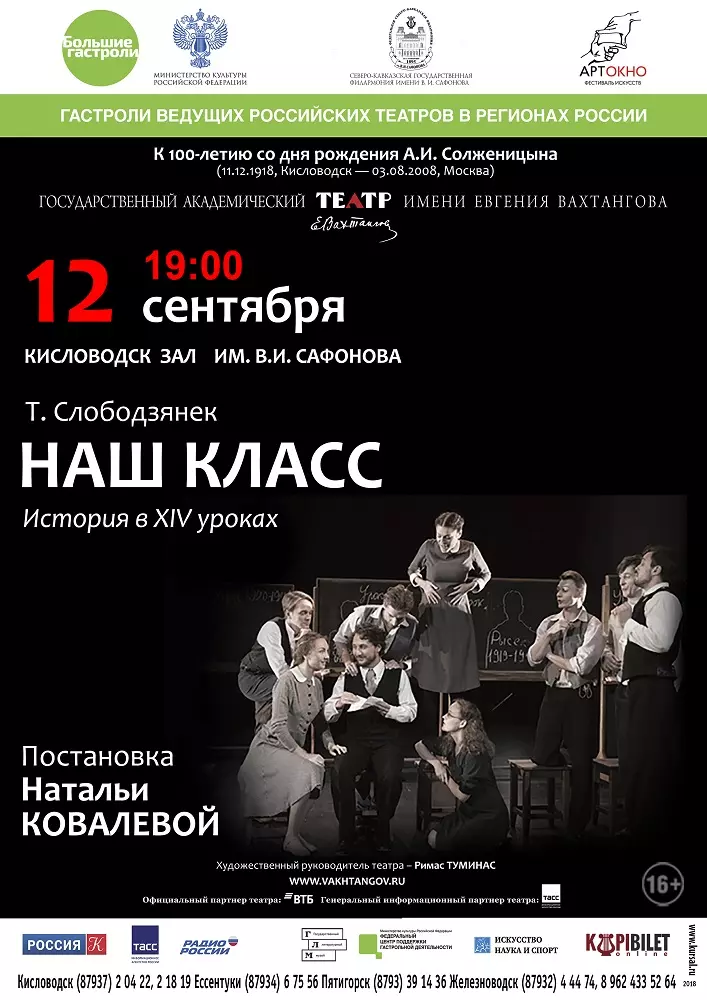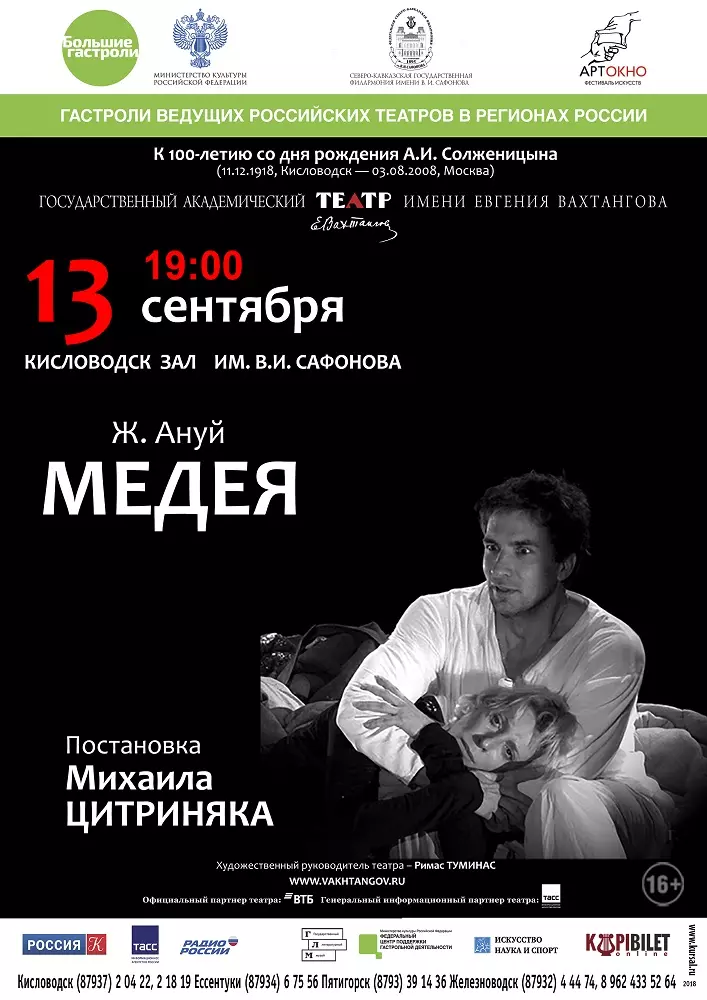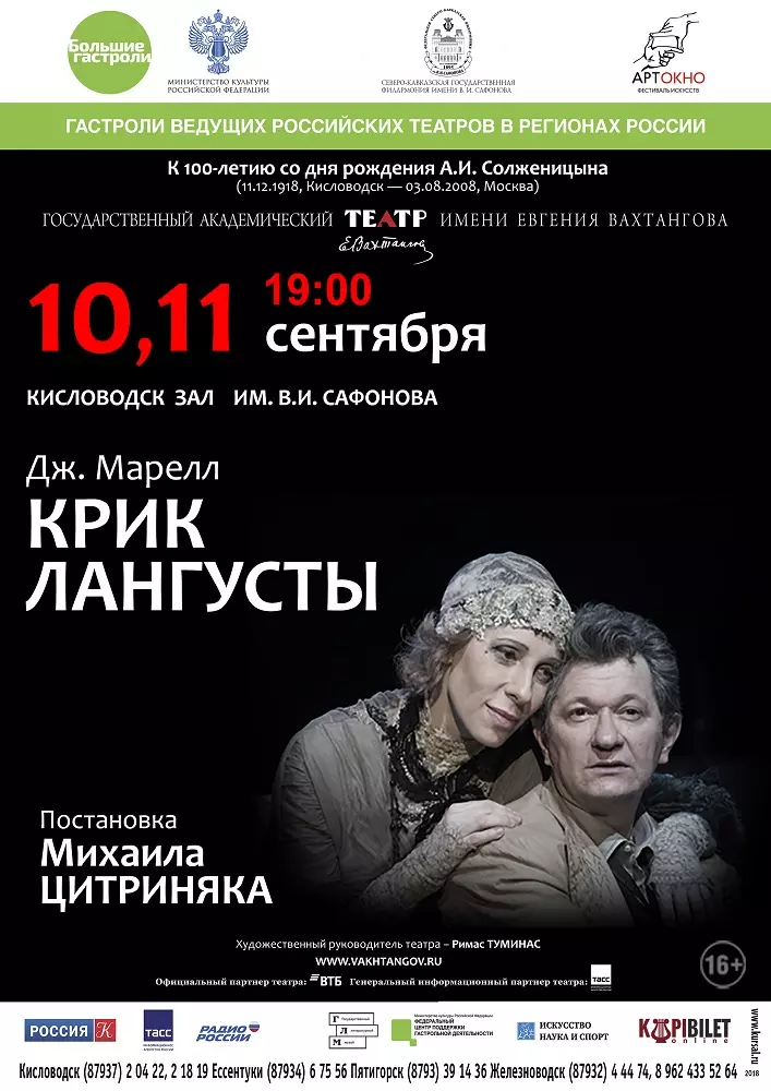 С 7 по 13 сентября в старинном зале им.В. Сафонова Кисловодске, а также в зале им. Ф. Шаляпина в Ессентуках состоятся Большие гастроли театра имени Евгения Вахтангова.