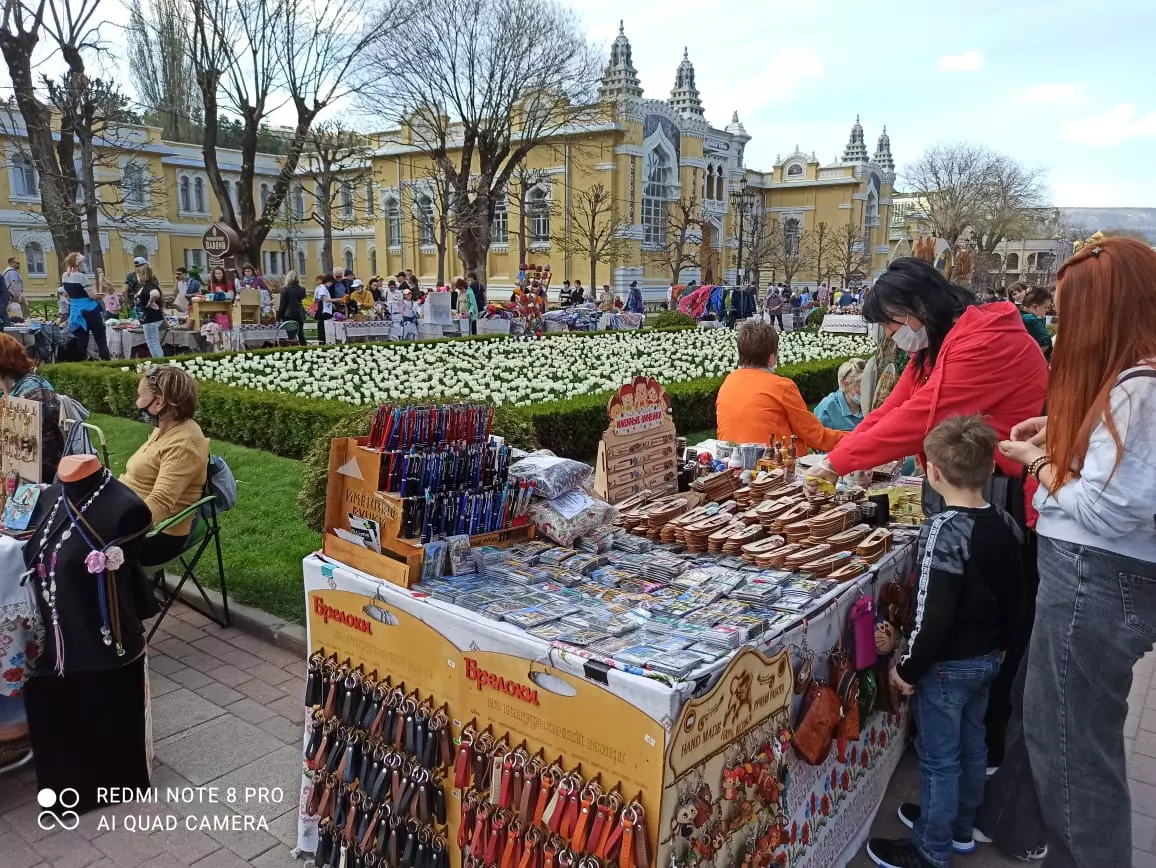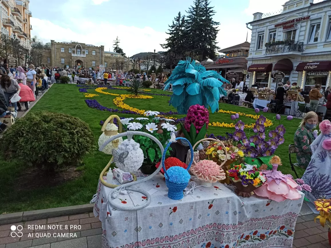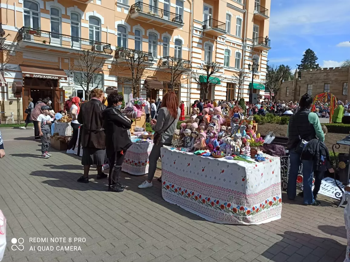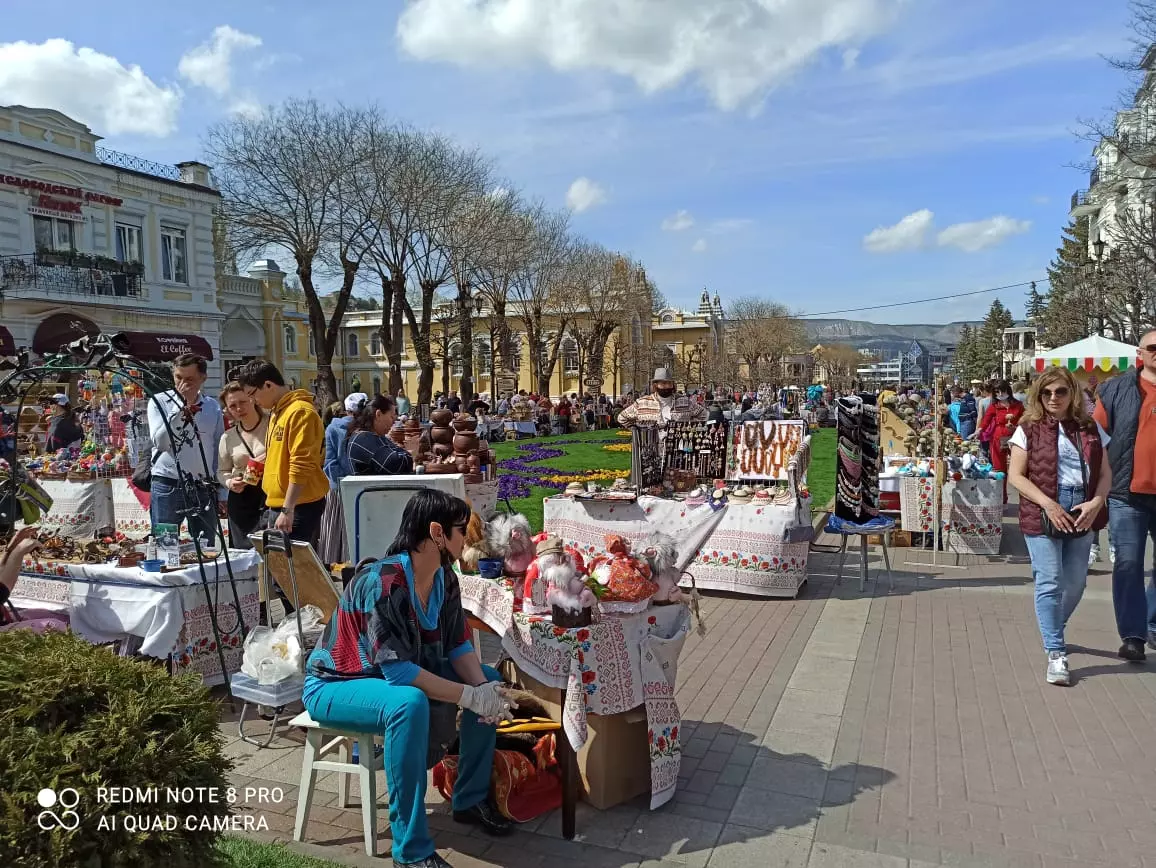 Множество гостей и жителей курорта собрал на Курортном бульваре в минувшее воскресенье фестиваль «Пасхальная радость». Звучали песни, кавказские ритмы, любимая музыка. Погода порадовала теплом и по-настоящему весенним солнцем, заставившим играть насыщенными красками узоры на клумбах, созданные виртуозами комбината благоустройства, и яркую традиционную выставку-ярмарку народных промыслов, расцветшую всеми цветами радуги. Свои изделия ручной работы на ней представили 90 мастеров, приехавших в город-курорт из городов Ставрополья, Кубани и Санкт-Петербурга.