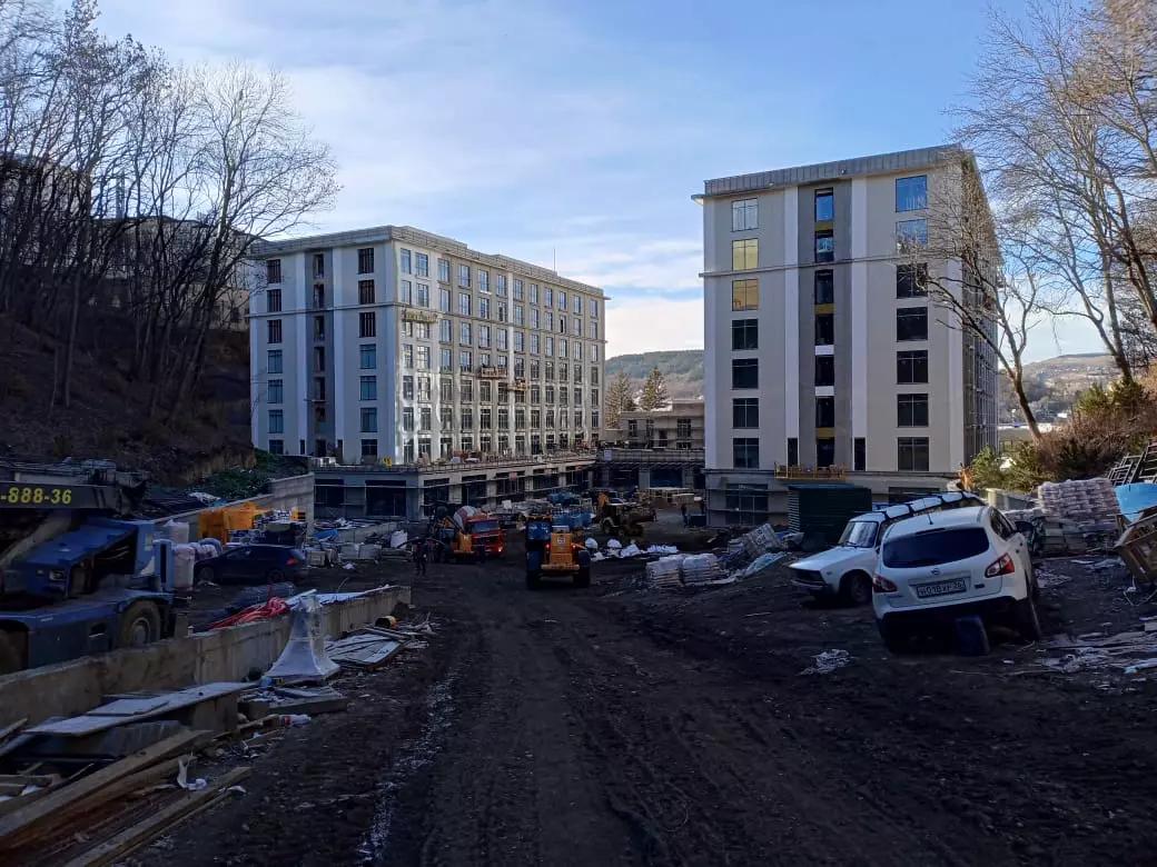 Фото строительства ООО «Санаторий «Источник Кисловодск», который находится на территории бывшего санатория «Кисловодск» по ул. Алексея Реброва, 15.