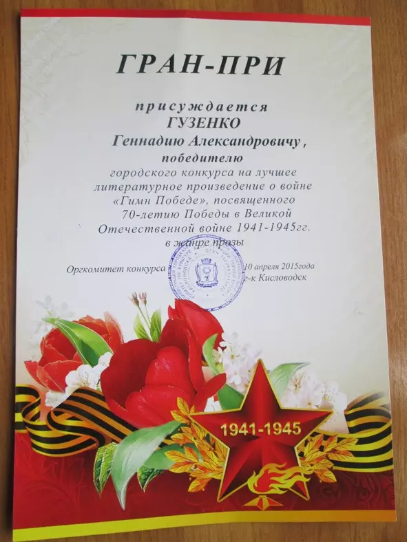 Саша! Так ведь и у тебя ГРАН-ПРИ. Поздравляю. А редакцию «Наш Кисловодск» сердечно благодарю за такое внимание и публикацию рассказа на своих страницах!