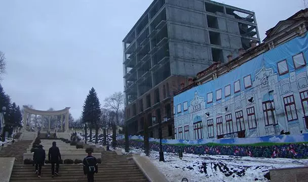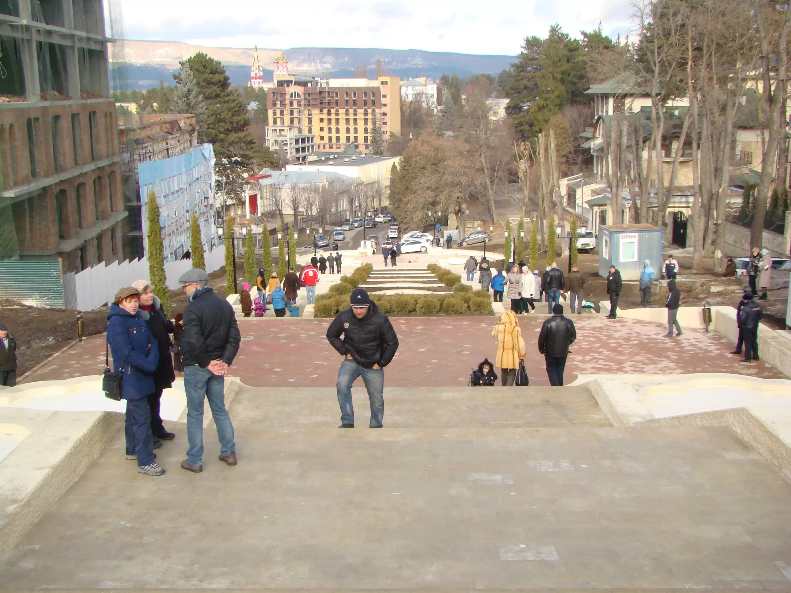 А сносить в Кисловодске есть чего! И сколько бы миллионов не вложило в возрождение города-курорта государство, если у новой местной власти не хватит мужества и настойчивости, чтобы навести порядок, все эти усилия, можно сказать, пойдут прахом. Как, например, уже получилось с Каскадной лестницей. Сколько денег, труда, энергии было вложено в ее реконструкцию, а в результате, сегодня, когда стоишь на самой ее вершине — смотровой площадке, то, прежде всего, замечаешь не прекрасную отделку обновленного памятника архитектуры и фонтаны с подсветкой, нет. Взгляд упирается в бетонный семиэтажный недострой, перекрывающий великолепную панораму на город, ради которой, собственно, и строилась Каскадная лестница. Помнится, как трудно было выбрать ракурс для торжественного фото в день, когда лестницу открывали после реконструкции. Как ни встань, в фокусе все равно оказывается серый бетонный монстр. Вполне понятны горечь и раздражение Валентины Матвиенко, удивлявшейся, почему местная власть до сих пор не смогла добиться, чтобы чужеродное сооружение было убрано. «Здание построено незаконно! – восклицала Матвиенко, — а администрация проиграла все суды. Почему?» И впрямь, почему? Почему оно вообще появилось в окружении памятников архитектуры, которыми застроен этот район города? Задавшись этим вопросом, мы выяснили немало интересных фактов.