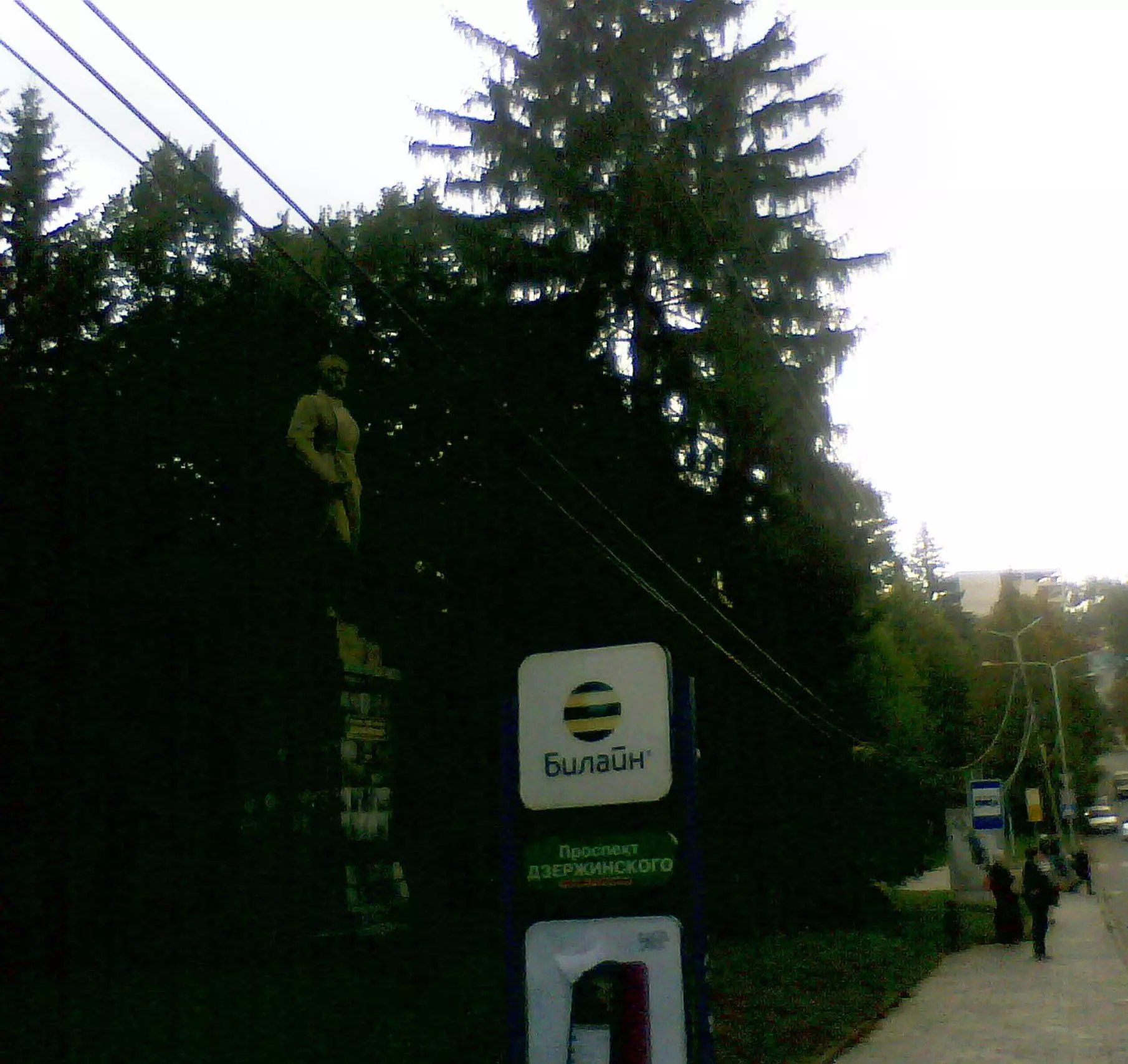 На протяжении полугода на проспекте Дзержинского около памятника Ф.Э. Дзержинскому провисают несколько мощных проводов линии электропередач. Расстояние от земли немного выше человеческого роста.