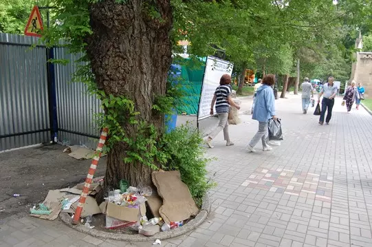 В курортном сезоне-2015 Кисловодск встречает отдыхающих просто уникально. У него не осталось ни одной спокойной улицы, где можно было бы насладиться тишиной и красотой цветников вдали от рыночного шума и выхлопных газов. Как рекреационная зона приказал долго жить Курортный бульвар, который идущие по делам пешеходы преодолевают, не задерживаясь. А около главного объекта курорта, Нарзанной галереи, между муниципальной улицей Коминтерна и федеральной территорией Курортного парка, протянулся примитивный, абсолютно неуместный здесь строительный забор из гофрированного металла. Протянулся бестолково, словно подкинув федералам добрый кусок грязного тротуара. Своим уродством он значительно превосходит торговые ряды с сувенирами. Это — ограждение для возведения будущей «подпорной стены», о которой сообщает специальный щит с паспортом объекта, установленный на месте привычного прохода к бювету. Россиян, как известно, подобной мелочью не остановить, так что с Коминтерна в галерею и в парк люди идут во множестве, пользуясь проемом между щитом и забором. По ту сторону, где тянется стена великолепного творения Самуила Уптона, их поджидают неприглядные кучи отходов и коробки с мусором, убирать который некому: его хозяева, по словам оставшихся предпринимателей, свои торговые места уже покинули. Многие из отдыхающих, идущих в обратном направлении, не заметив проема, мирно следуют вдоль галереи и забора в логичной уверенности, что в конце их ждет выход. И — оказавшись внутри отвратительного замусоренного тупика, возвращаются обратно. Что именно решила подпирать на этом ровном месте городская администрация, для непосвященных гостей курорта остается полной головоломкой. А те, кто внимательно читает безграмотный текст паспорта объекта и выясняет, что «длинна» стены составит целых 150 метров, тщетно пытаются понять смысл столь дорогого и несвоевременного строительства в городе, погрязшем в куда более важных проблемах. А еще из этого паспорта следует, что подрядчик строительства не определен, то есть это уродство раскорячилось здесь надолго. Впрочем, по мнению некоторых посвященных, оно наверняка исчезнет после полной капитуляции ярмарки. Просто не хватило у нынешних правителей фантазии, чтобы и найти удобный вариант торговых мест для предпринимателей, и встретить достойно курортную публику.