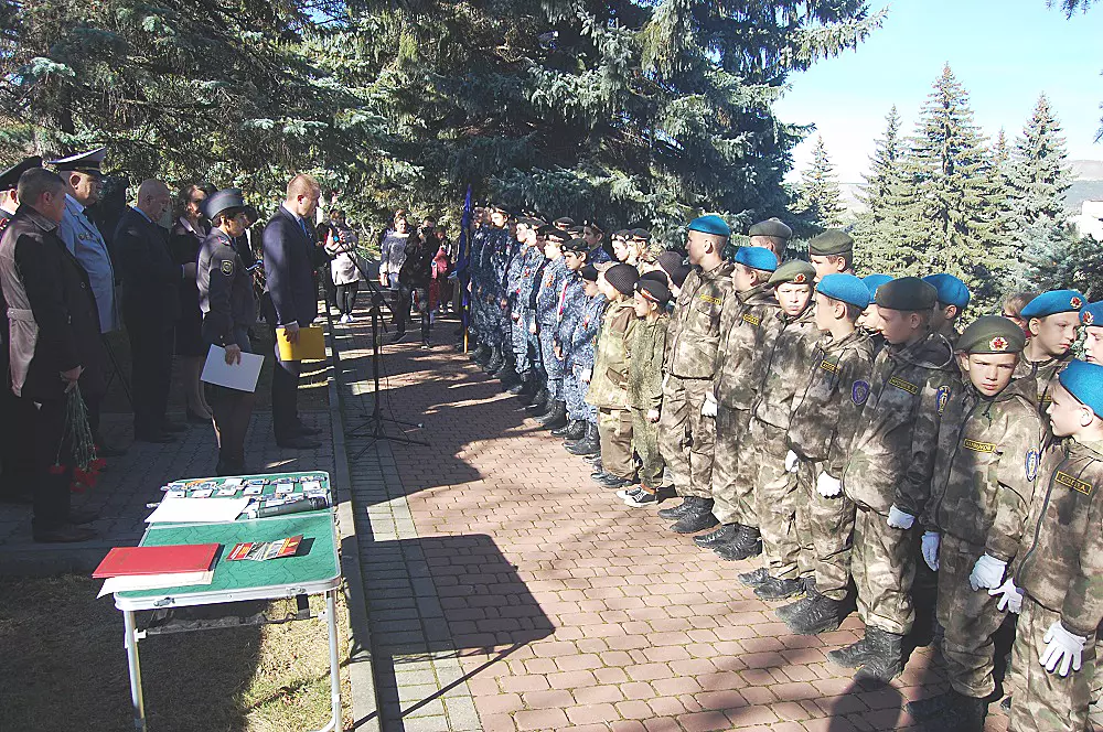 Торжественную клятву в преданности Отечеству дали 13 юных патриотов, которых с важным событием поздравил начальник отдела МВД России по городу Кисловодску полковник полиции Александр Руденко, вручив под Марш милиции каждому кадетские удостоверение и погоны. С поздравлениями и напутственными словами к ребятам обратились председатель совета ветеранов ОМВД России по Кисловодску, полковник полиции в отставке, депутат думы города-курорта Григорий Каймин. Начальник военно-учетного стола Вячеслав Фомченков поблагодарил Мариетту Микитась — руководителя «Беркута», которому скоро исполняется 10 лет — за большой вклад в военно-патриотическое воспитание молодежи, а также наградил отличившихся кадетов памятными наручными часами. Благодарственные письма от руководителя общества «Двуглавый орел» на КМВ Олега Фомченкова-Бровко получили участники концертной программы, представленной военнослужащим 7 Российской военной базы ВС РФ в Абхазии. А московский военно-патриотический центр «Вымпел» наградил кисловодских кадетов грамотами за активное участие в военно-патриотической деятельности.