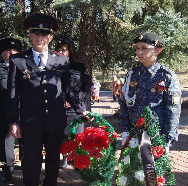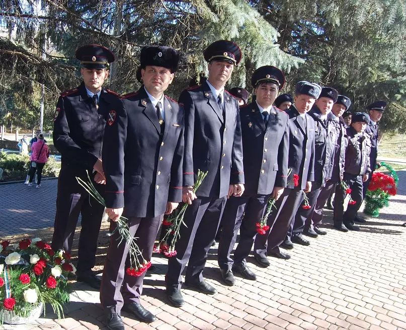 Ветераны МВД и кадеты, застыв в едином строю, почтили память шестерых коллег, кисловодских полицейских, отдавших свою жизнь при исполнении долга. Их имена прозвучали на фоне тихой скорбной музыки, сменившейся Минутой молчания. Завершилось мероприятие, которое подготовили и провели Евгения Кудрявец, художественный руководитель МКПЦ «Дружба», и председатель совета СОЗ «Офицерская честь» Борис Фарзалиев, возложением цветов к подножию памятника.